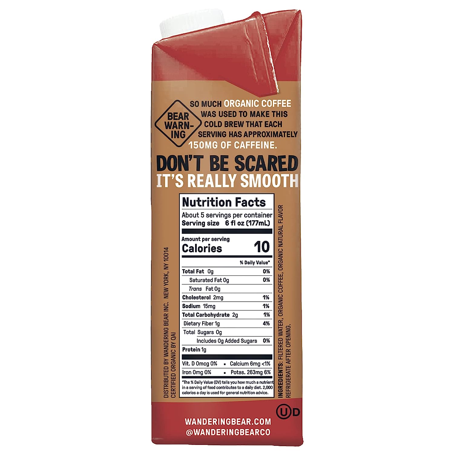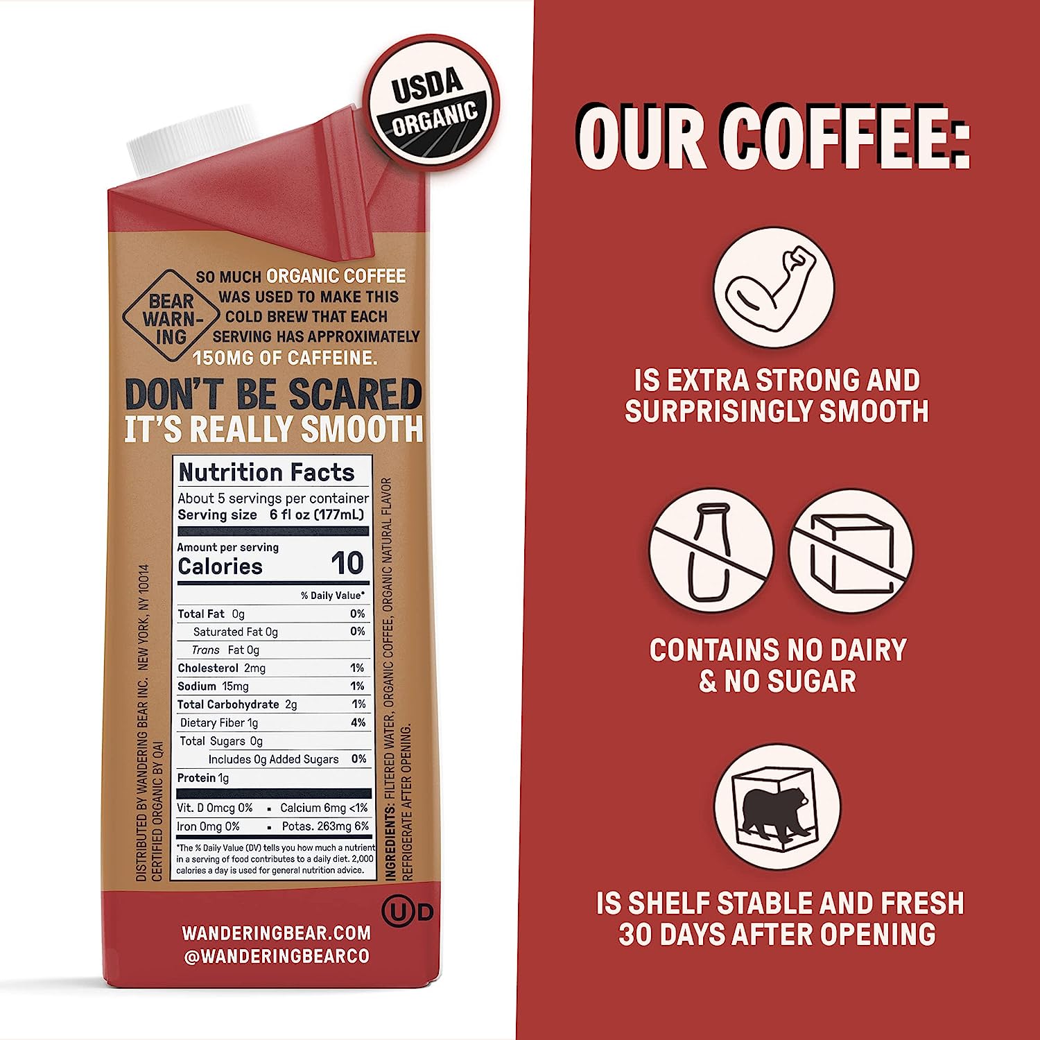 Wandering Bear Organic Mocha Cold Brew Coffee. 32 fl oz. 6 pack - Extra Strong. Smooth. Organic. Unsweetened. Shelf-Stable. and Ready to Drink Iced Coffee. Cold Brewed Coffee. Cold Coffee