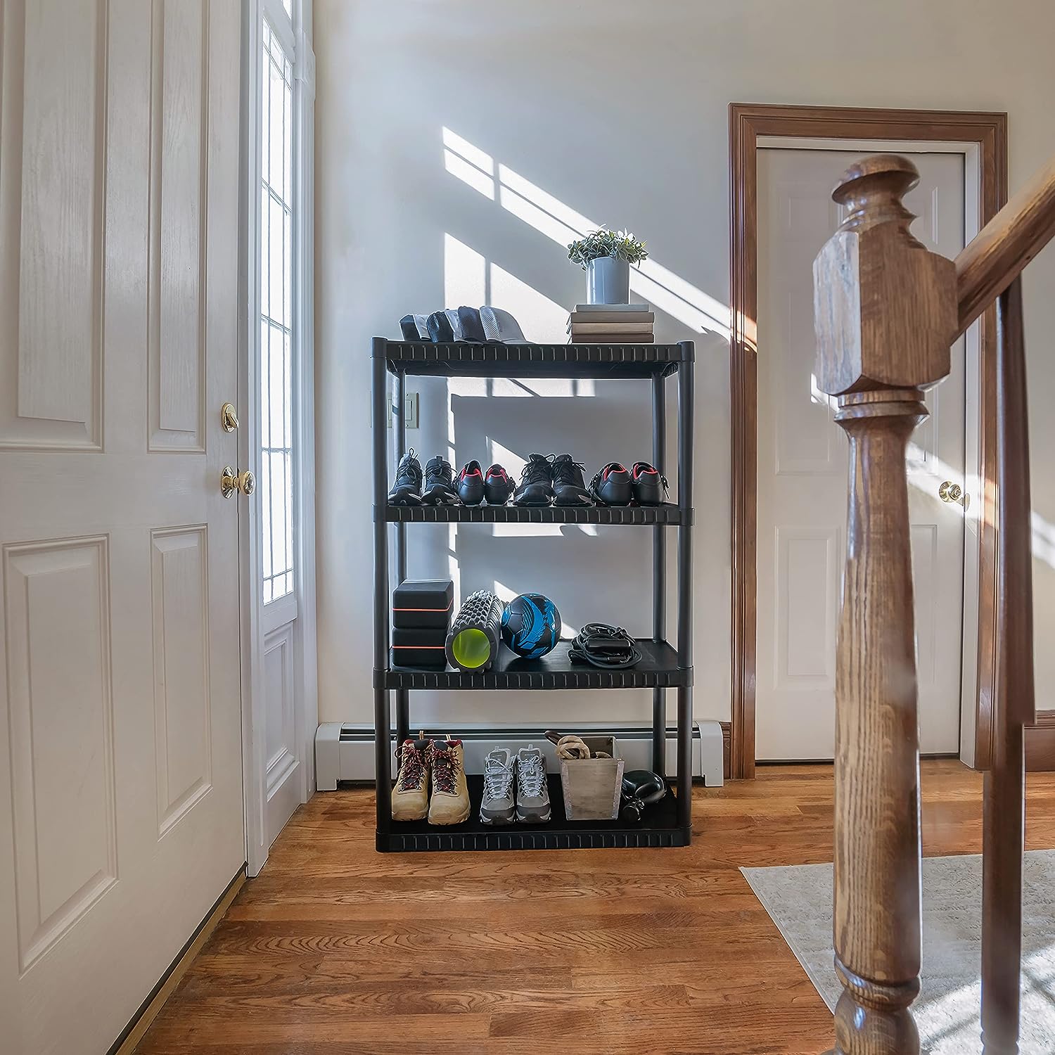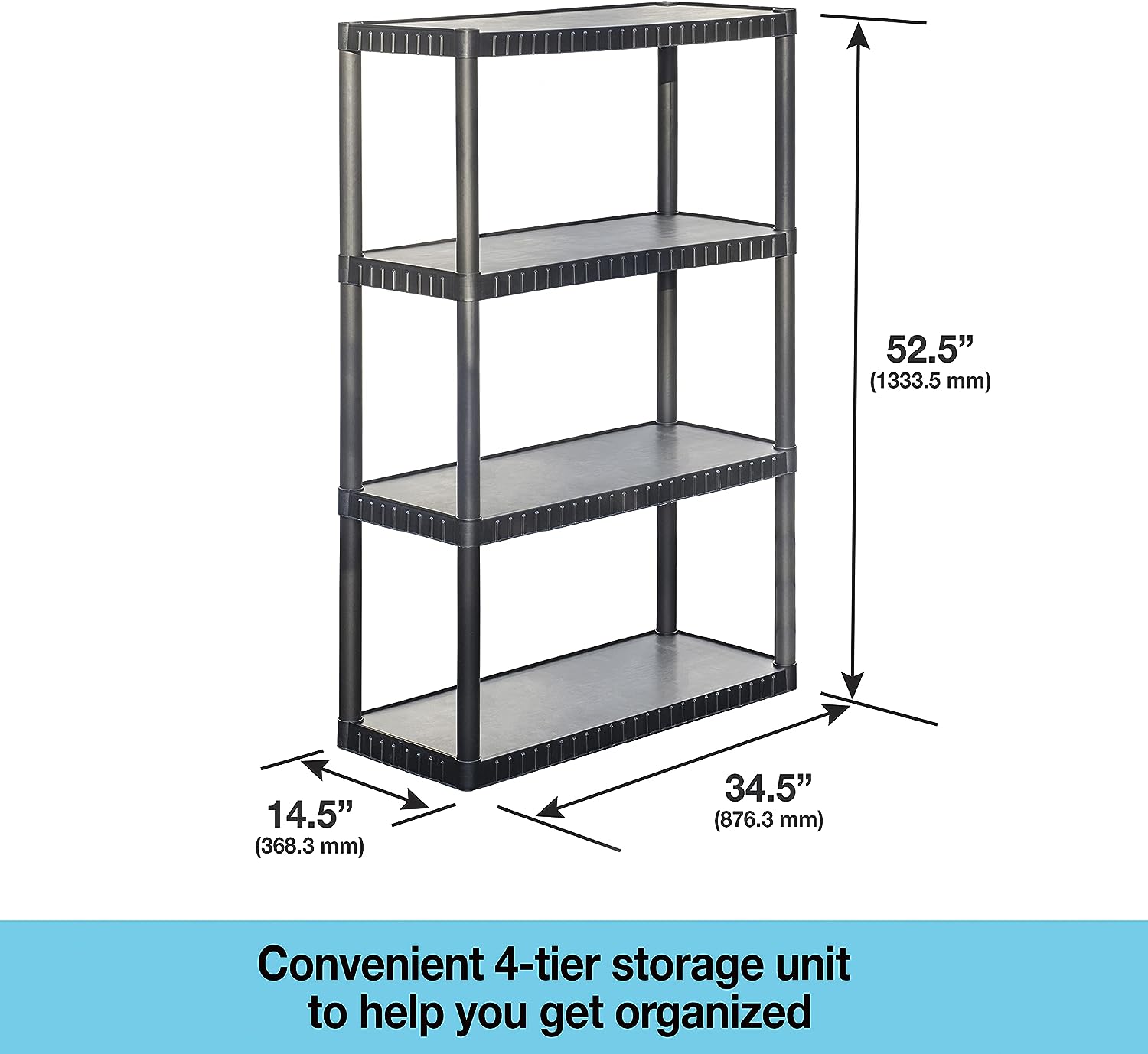BLACK+DECKER 4-Tier Medium Duty Solid Storage Shelf. 75lbs/Shelf (52.1H x 34.8W x 14.6D). Plastic Shelving Unit