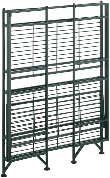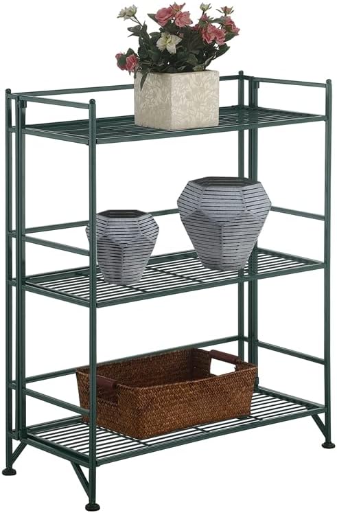Convenience Concepts Xtra Storage Shelves - 3-Tier Wide Folding Metal Shelving. Modern Shelves for Storage and Display in Living Room. Bathroom. Office. Kitchen. Garage. Forest Green