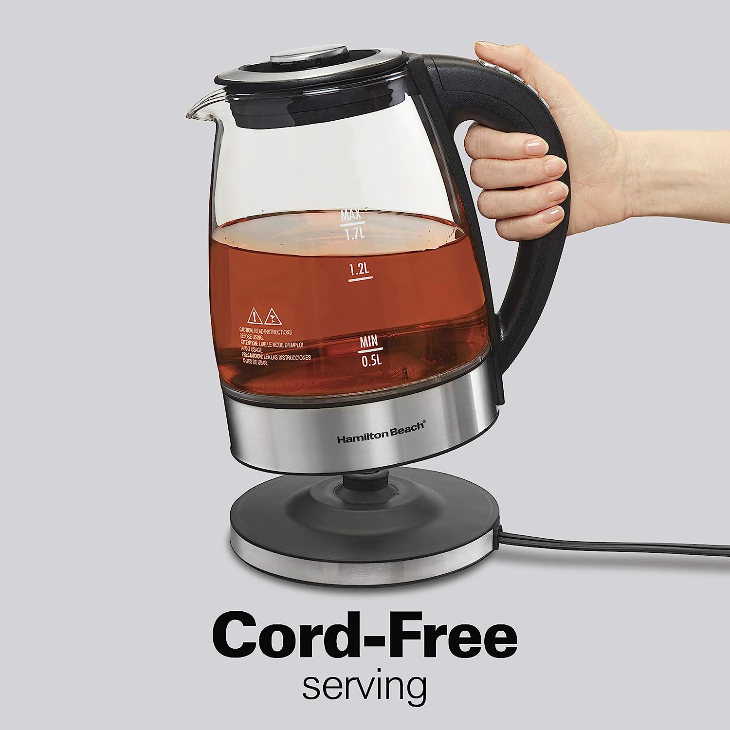 Hamilton Beach Temperature Control Glass Electric Hot Water Kettle & Boiler with Removable Tea Infuser. 1.7L. Cordless. Keep Warm. Auto-Shutoff & Boil-Dry Protection (40942)