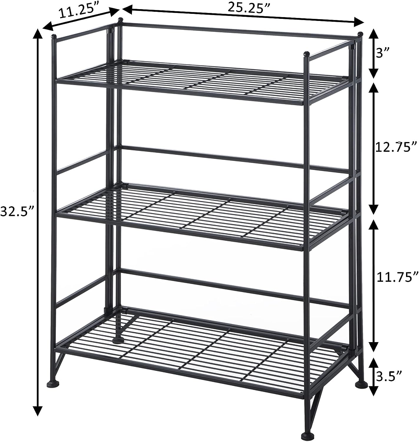Convenience Concepts Designs2Go X-Tra Storage 3-Tier Wide Folding Metal Shelf. Black