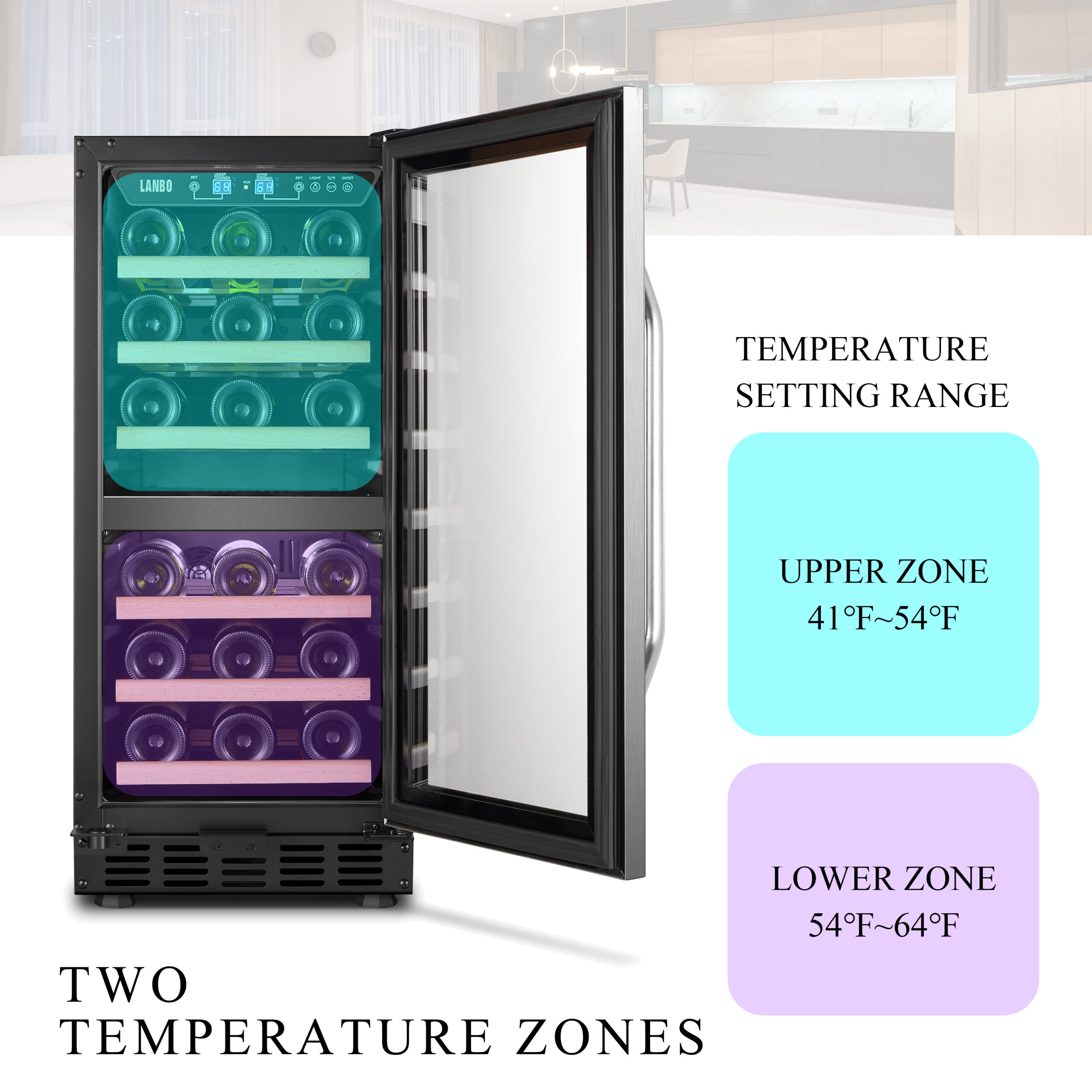 Lanbo 28 Bottle Under Counter Dual Zone Wine Cooler Refrigerator