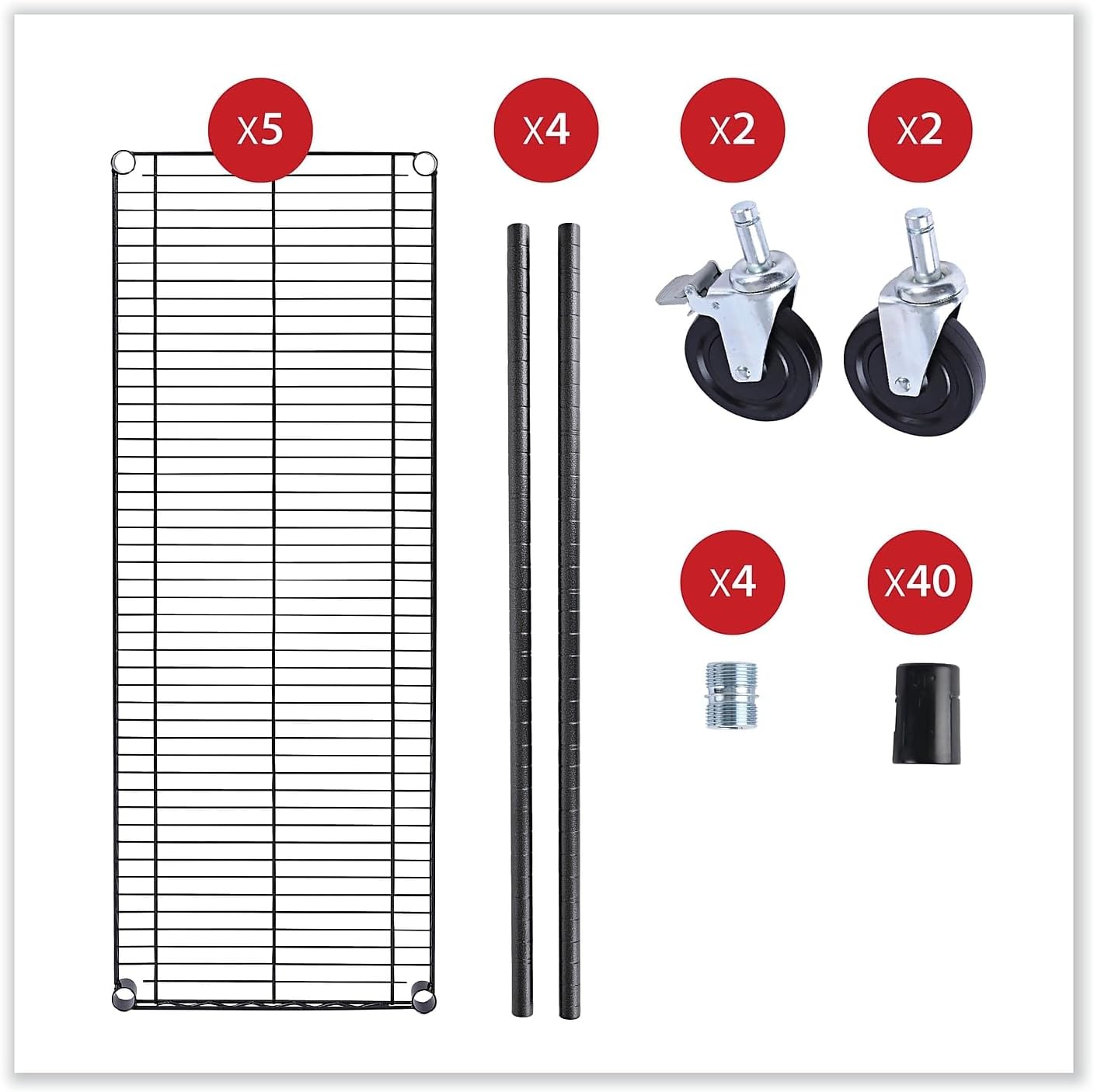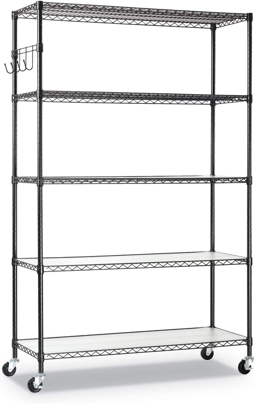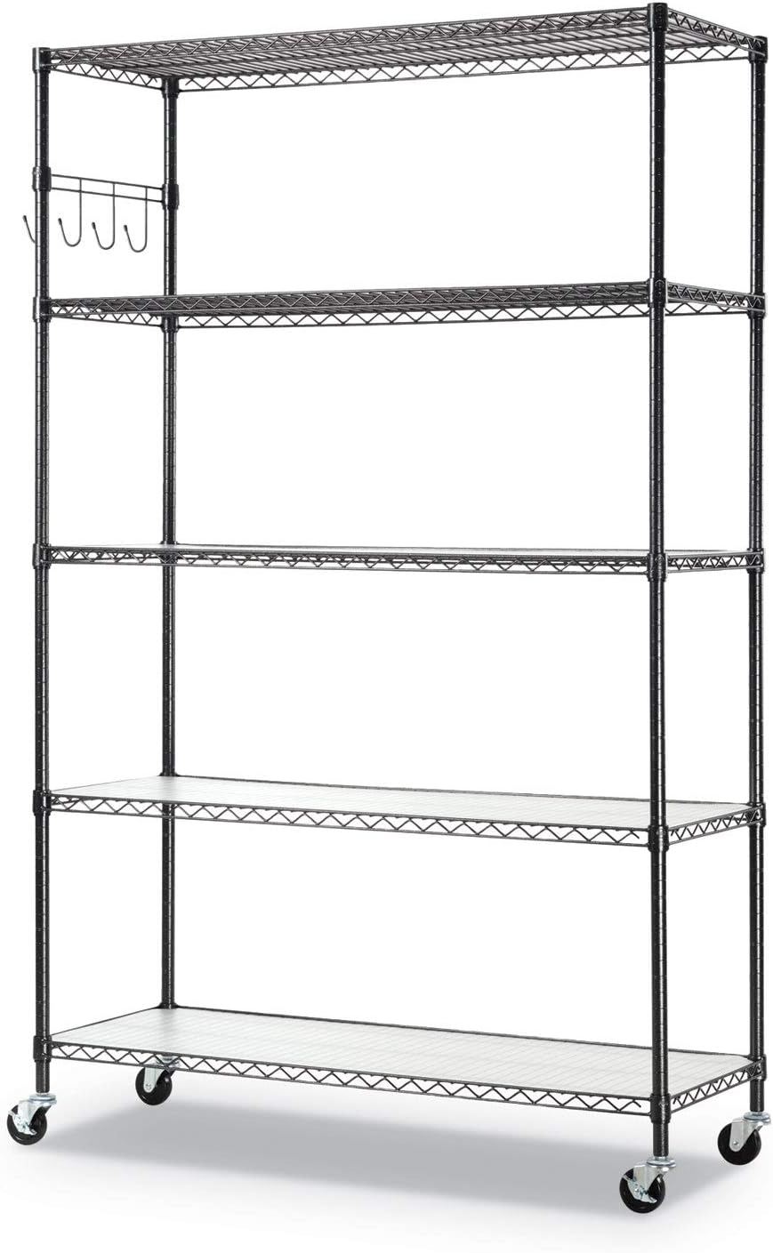 Alera 5-Shelf Wire Shelving Kit with Casters and Shelf Liners. 48w x 18d x 72h. Black Anthracite