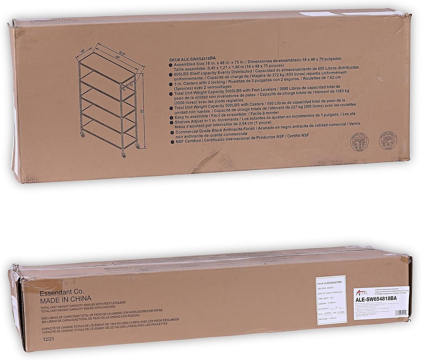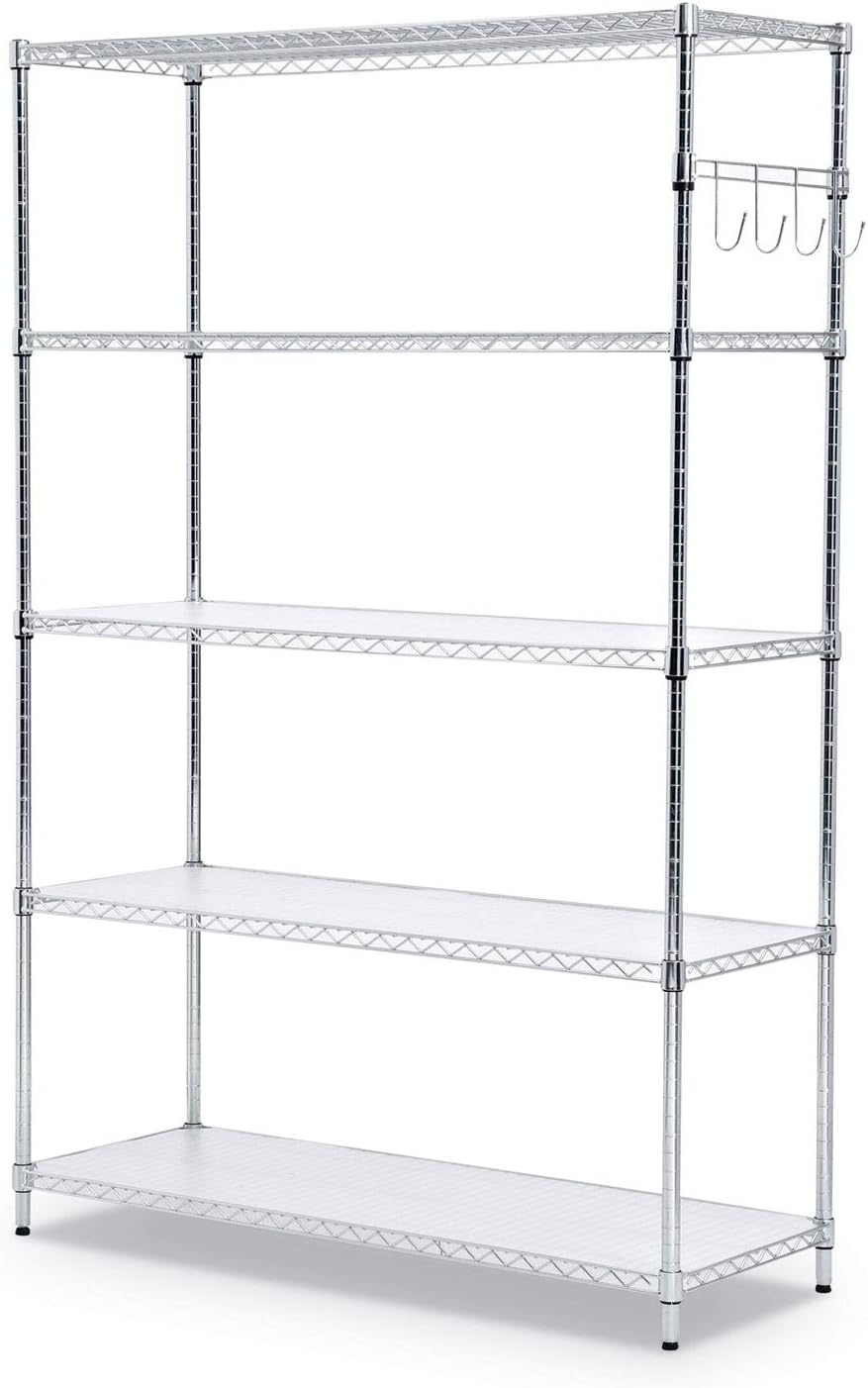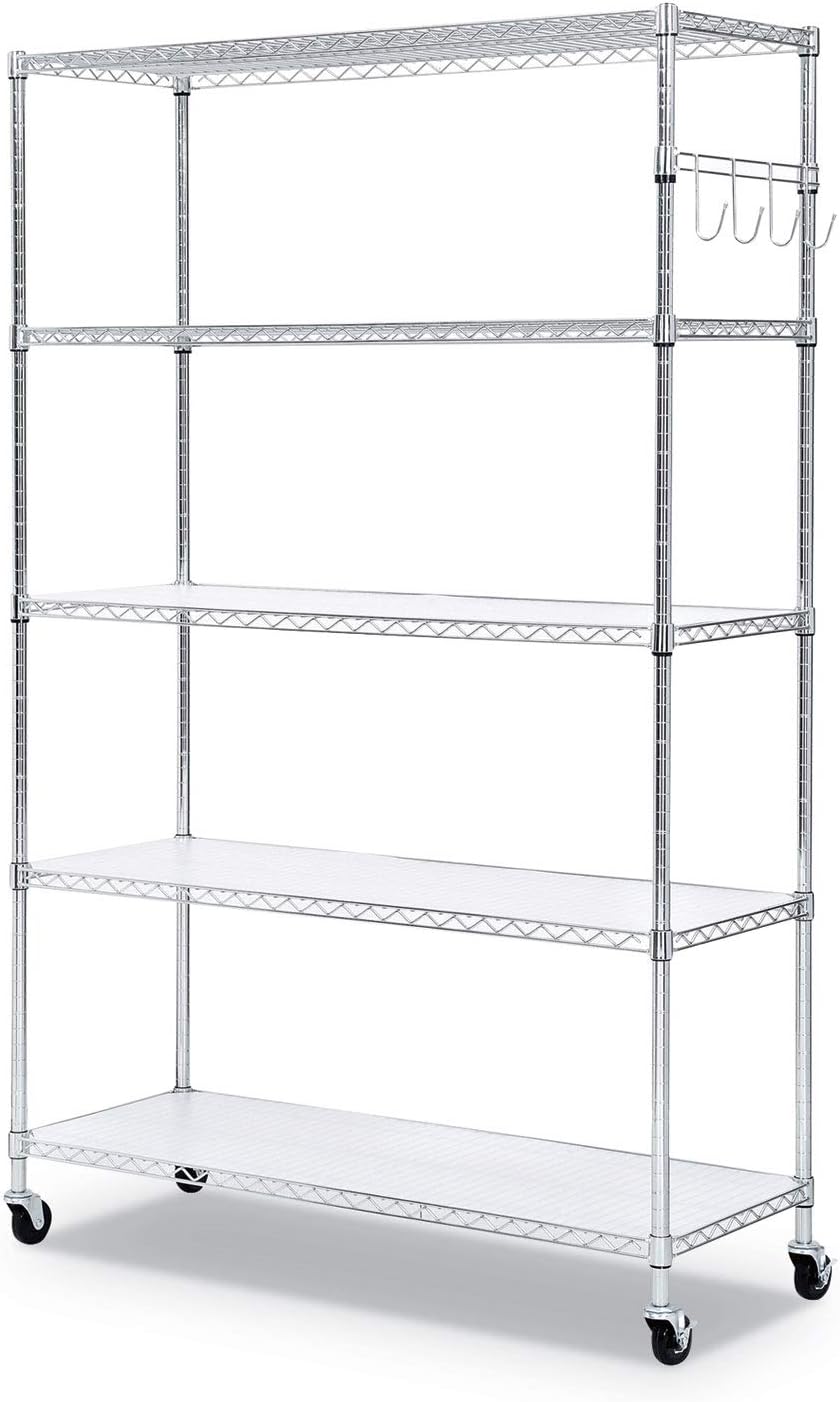 Alera 5-Shelf Wire Shelving Kit with Casters and Shelf Liners. 48w x 18d x 72h. Silver