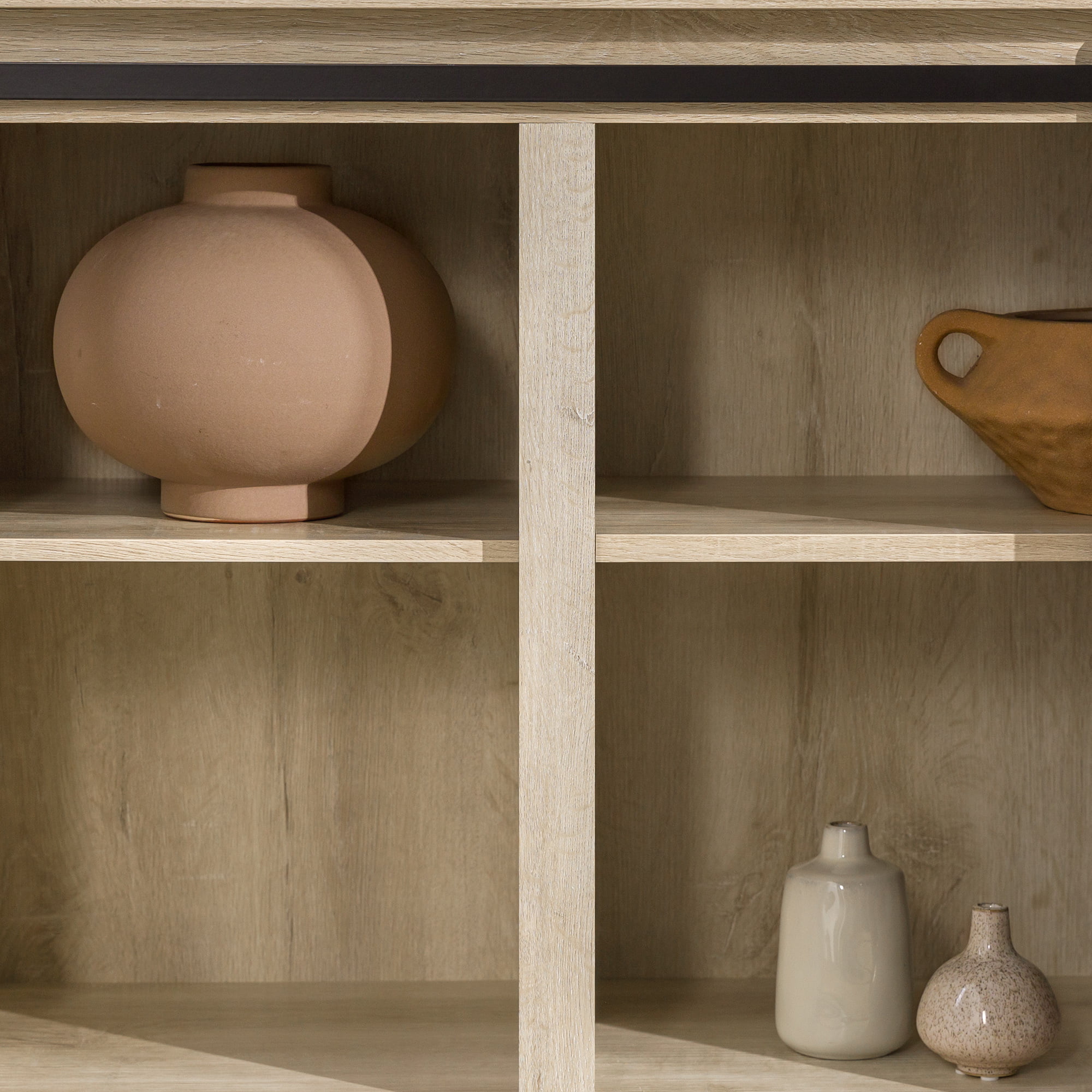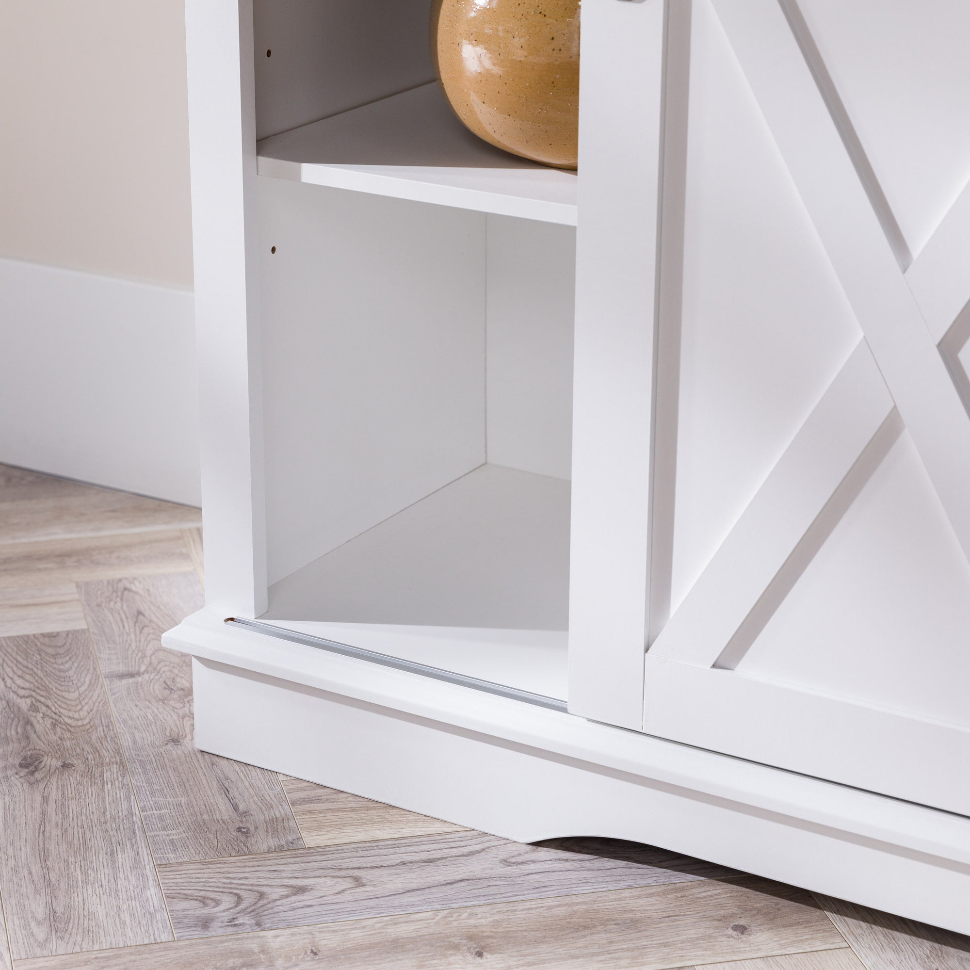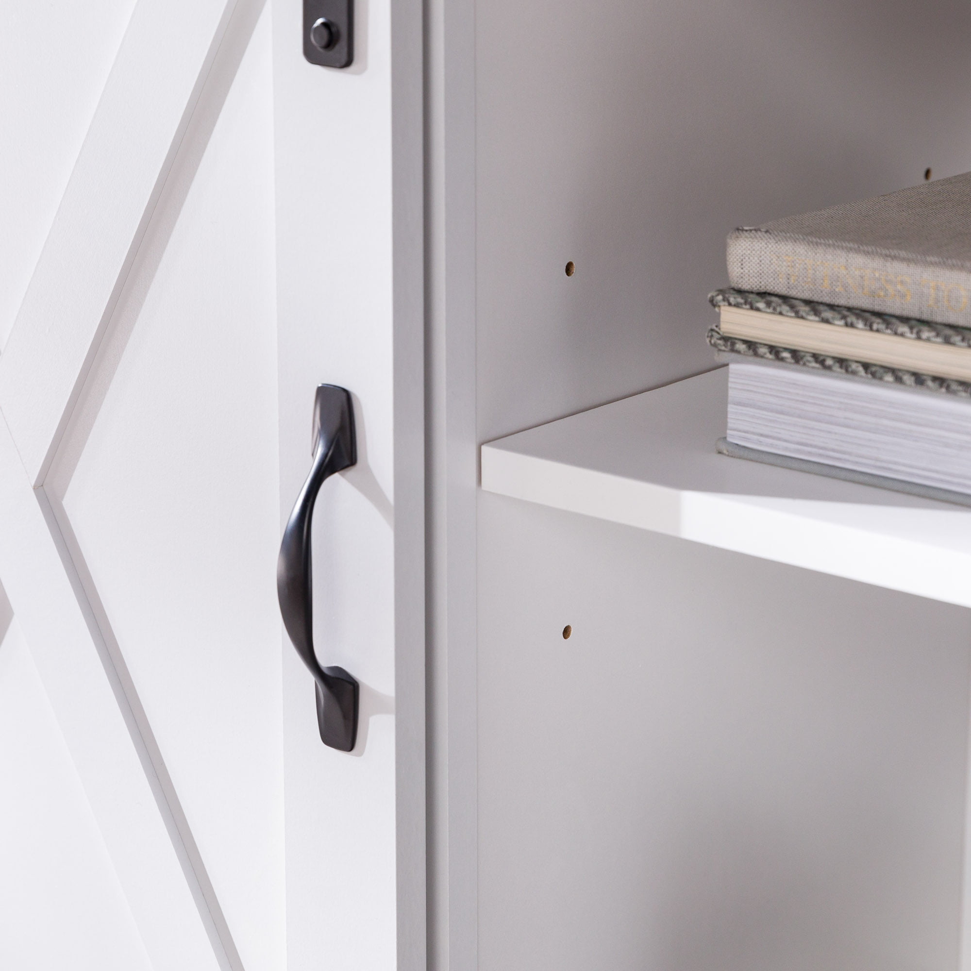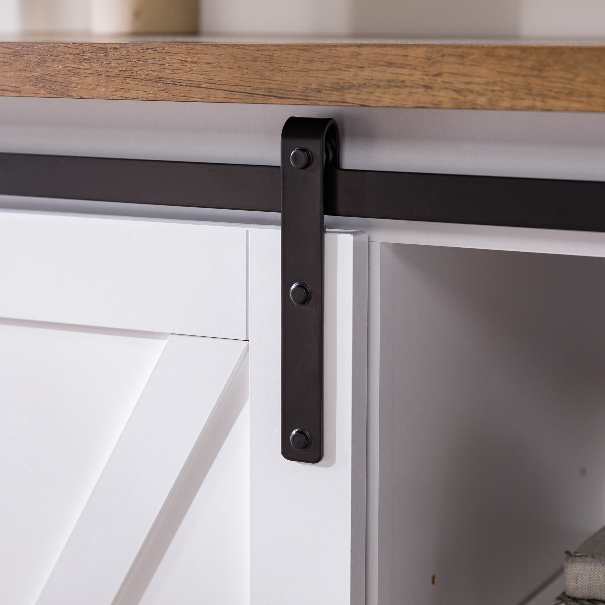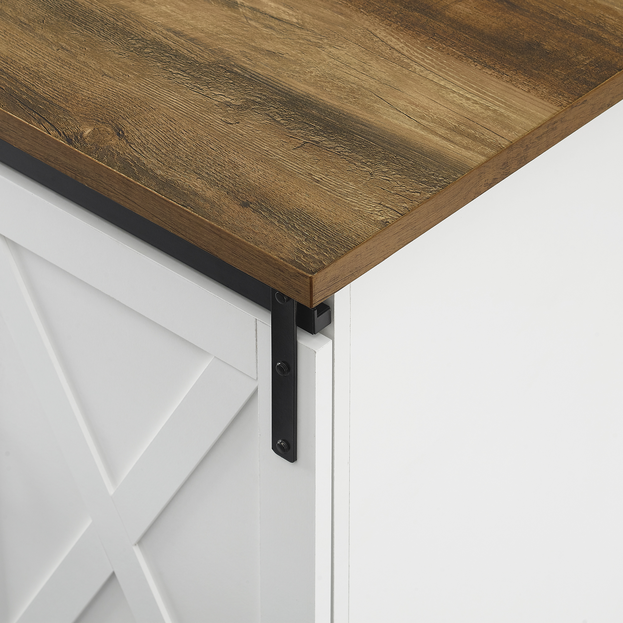Woven Paths Sliding Farmhouse Barn Door TV Stand for TVs up to 65″. White Oak/Brown