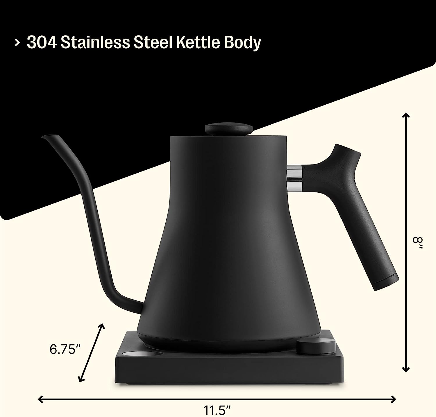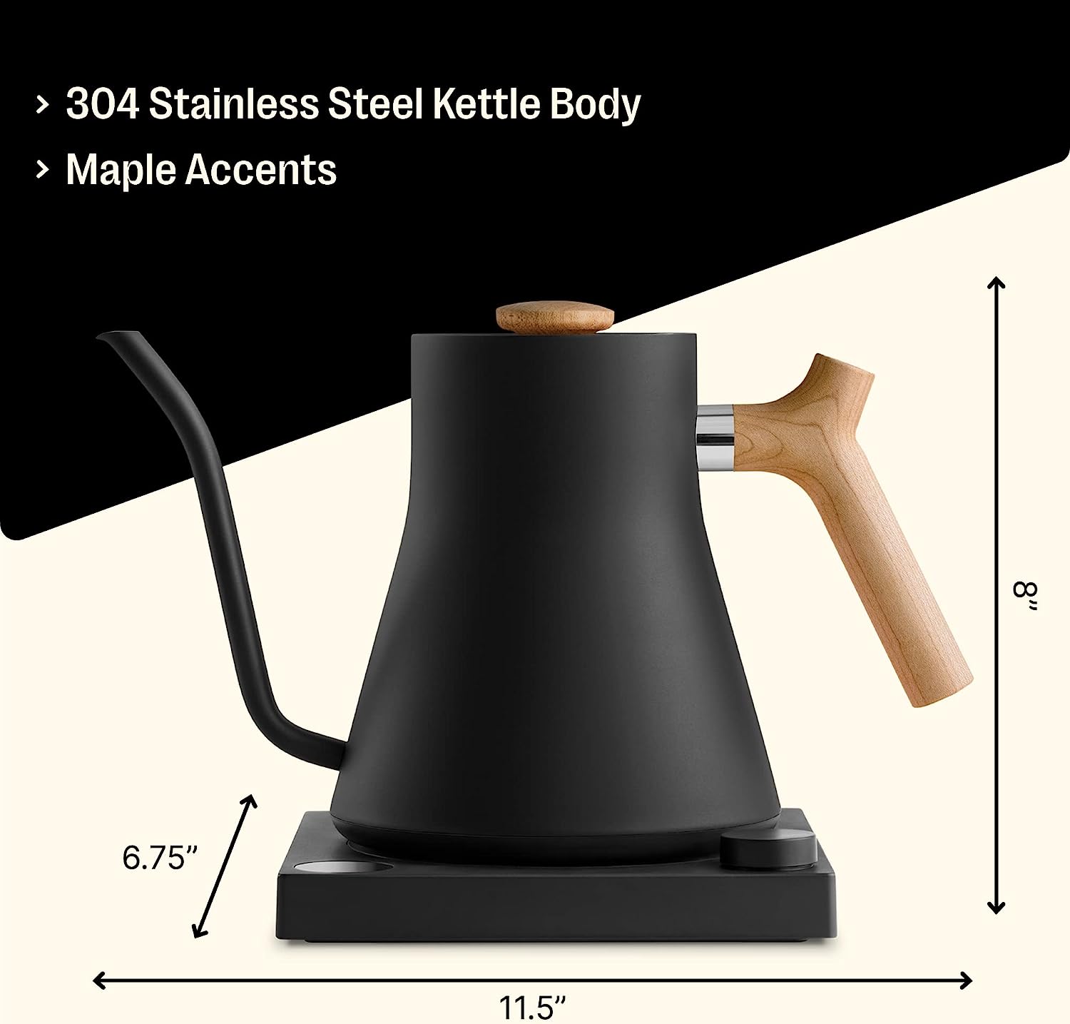 Fellow Stagg EKG Electric Gooseneck Kettle - Pour-Over Coffee and Tea Kettle - Stainless Steel Boiler - Quick Heating Electric Kettles for Boiling Water - Matte Black With Maple Handle