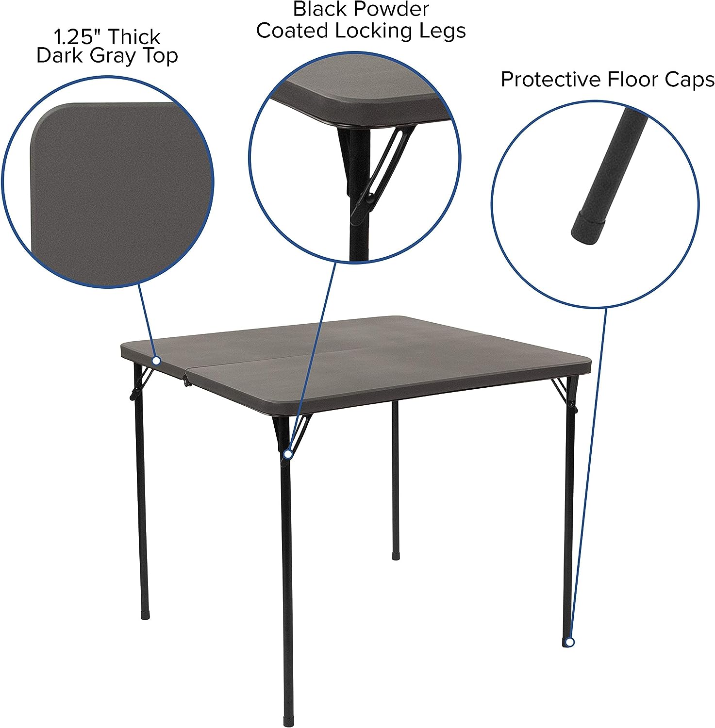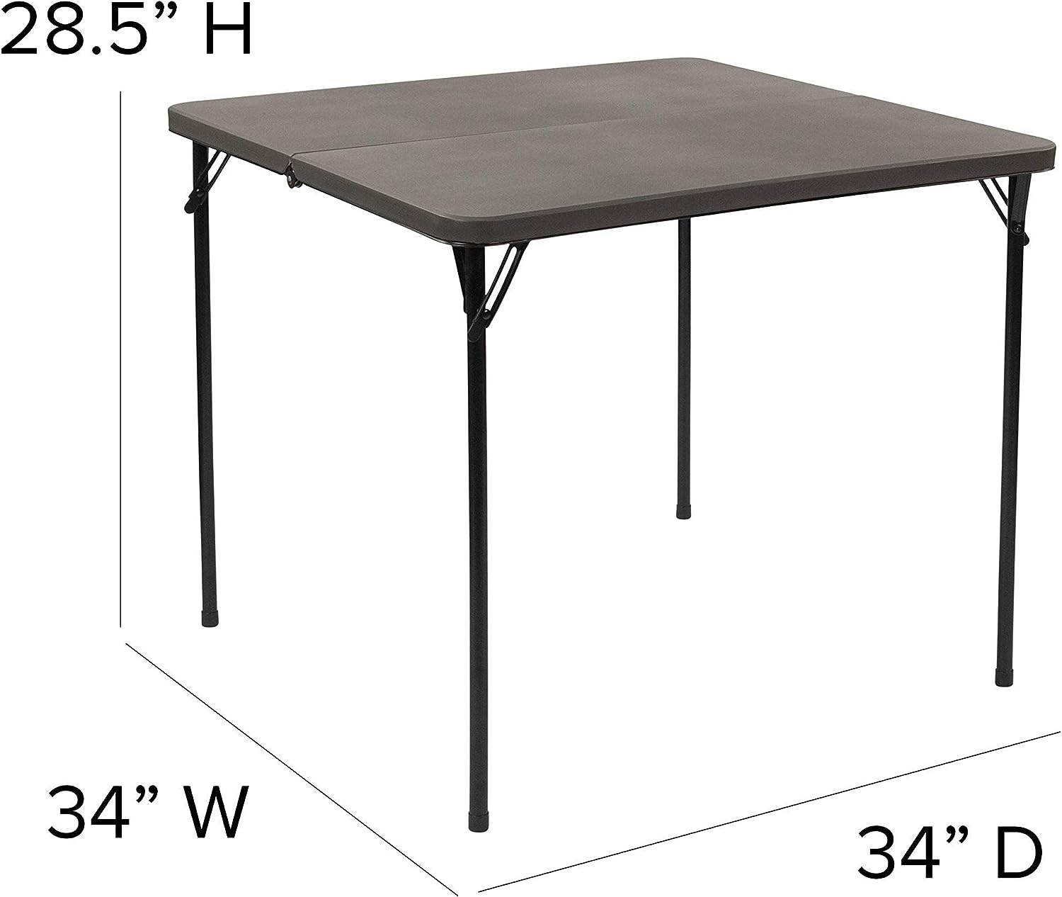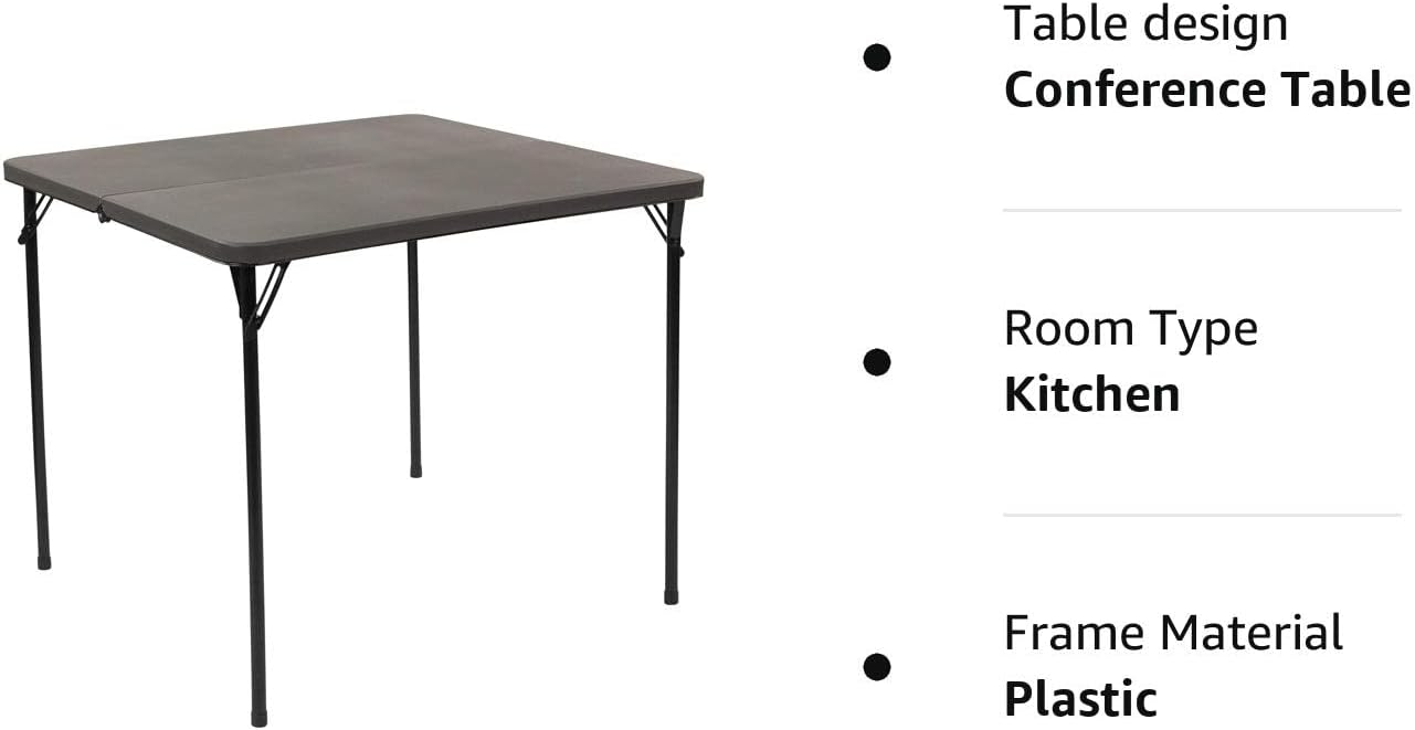 Flash Furniture Dunham 2.83-Foot Square Bi-Fold Dark Gray Plastic Folding Table with Carrying Handle