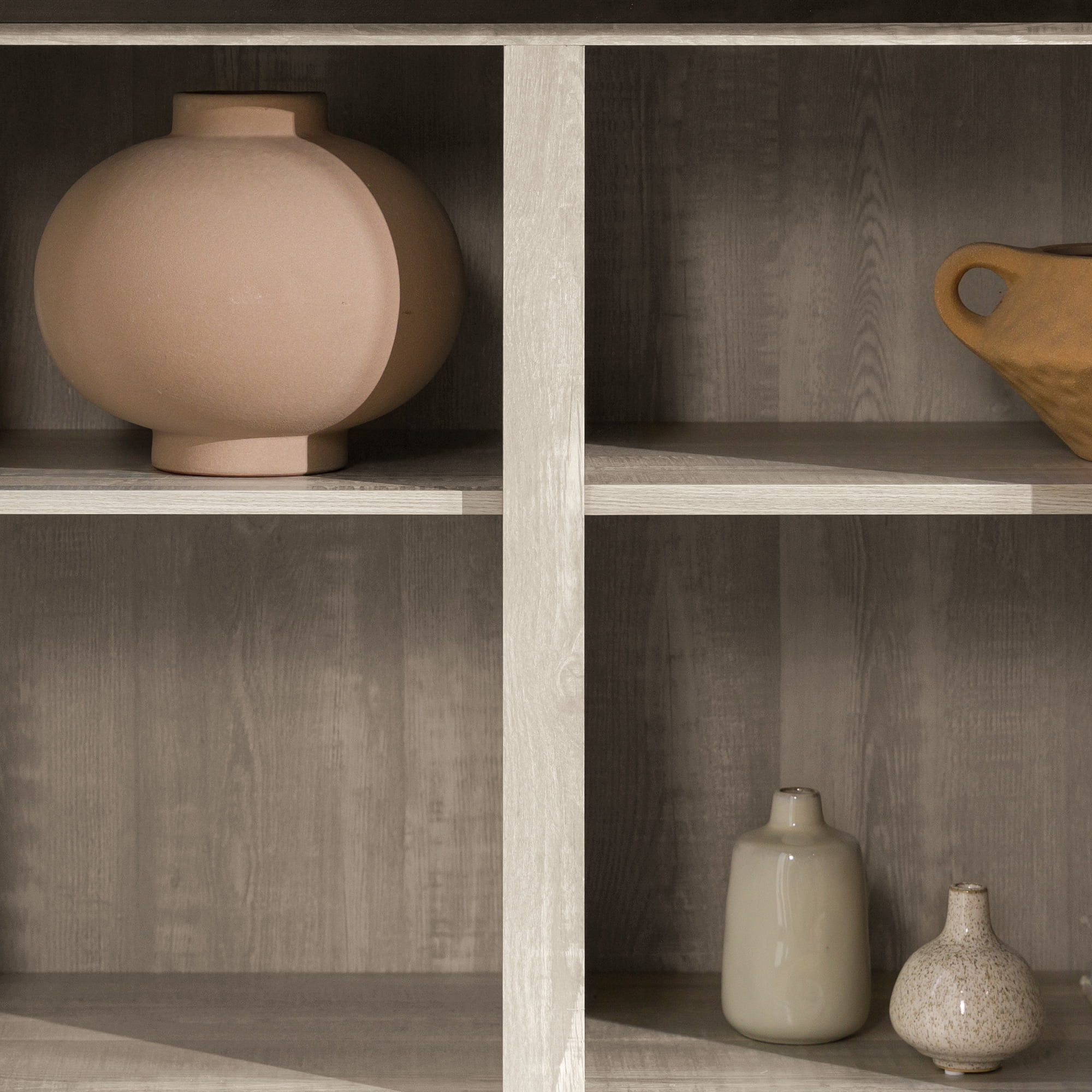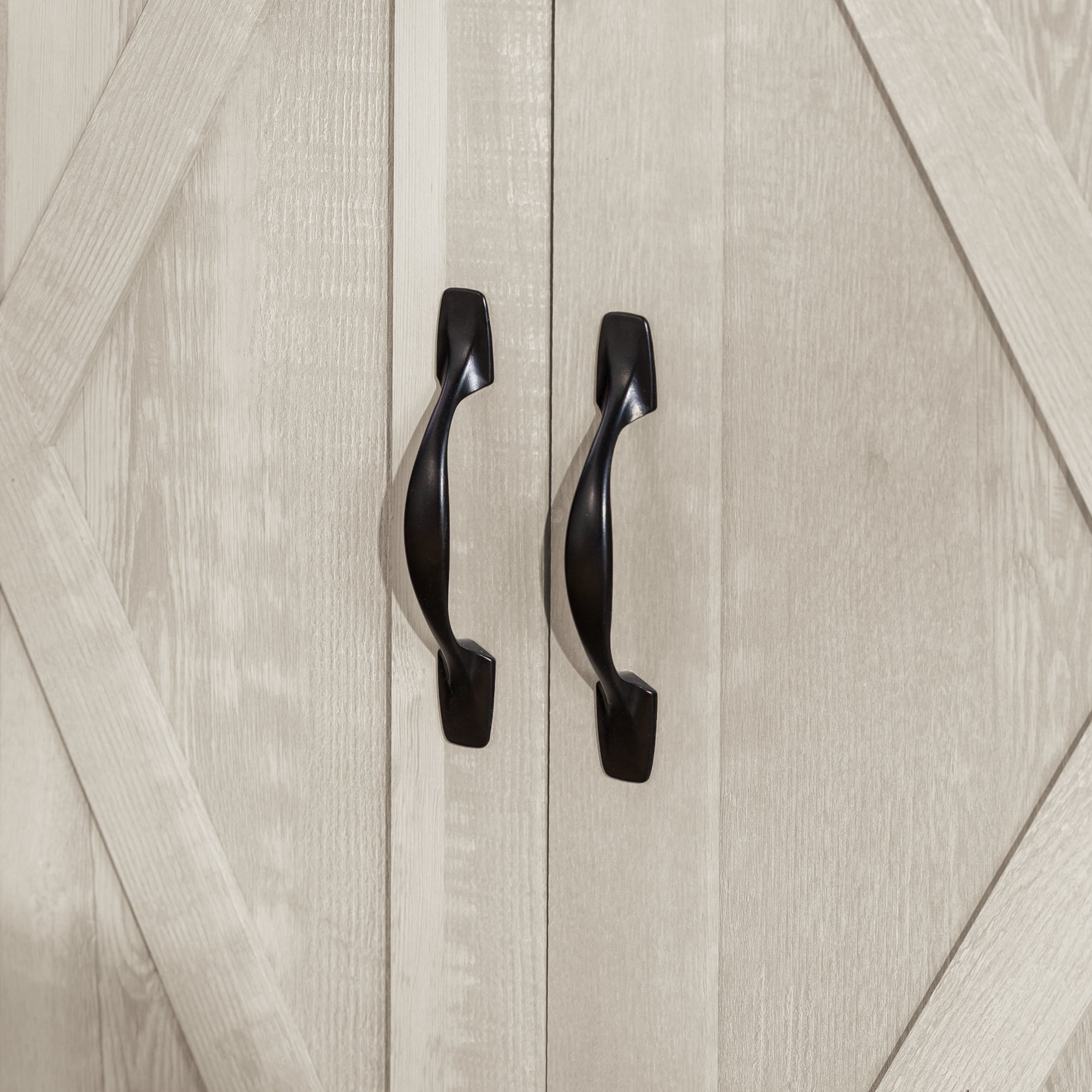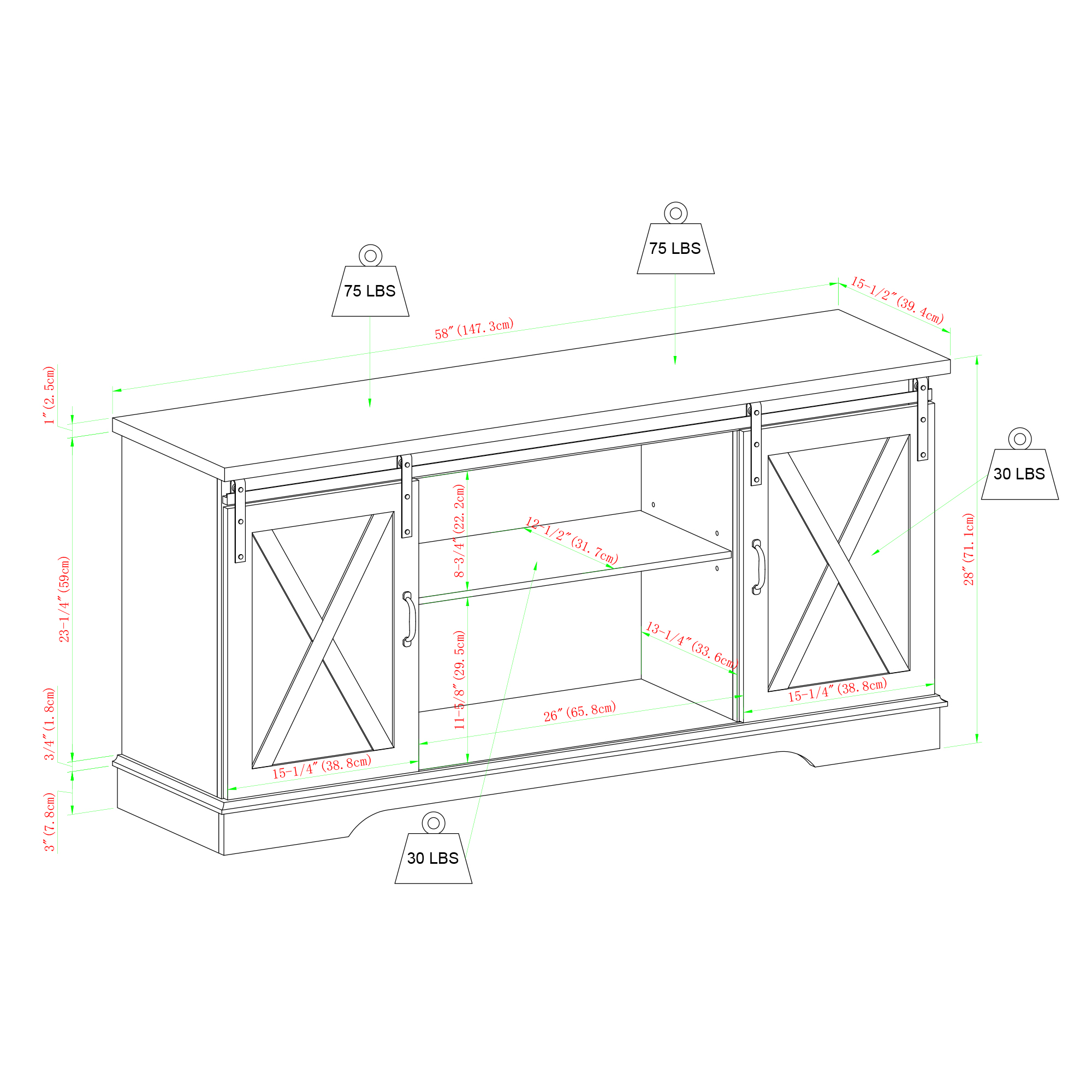 Woven Paths Sliding Farmhouse Barn Door TV Stand for TVs up to 65″. Grey Wash