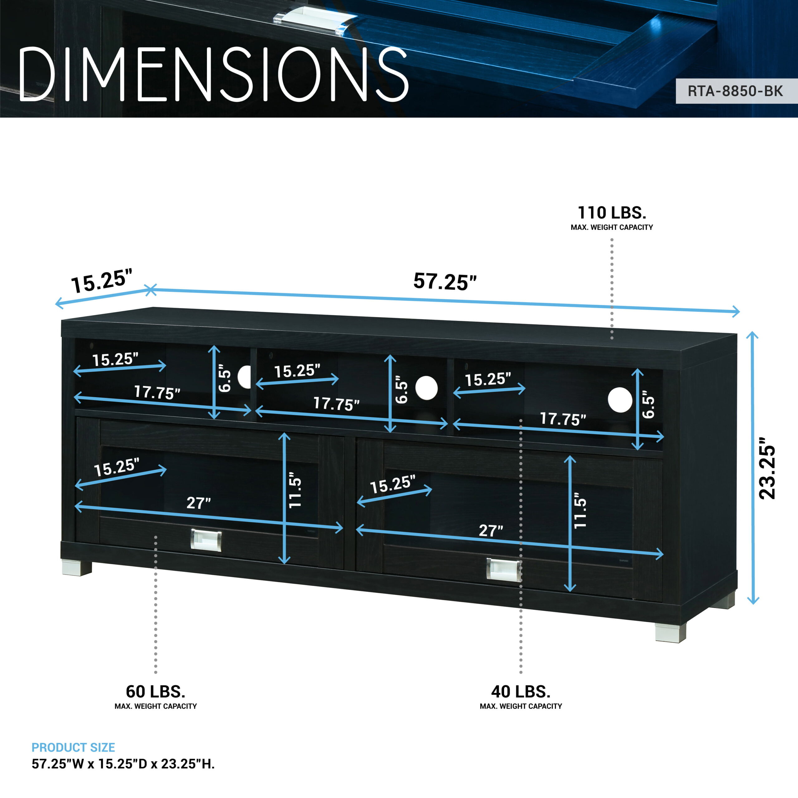 Techni Mobili 58″ Durbin TV Stand for TVs up to 75″. Black