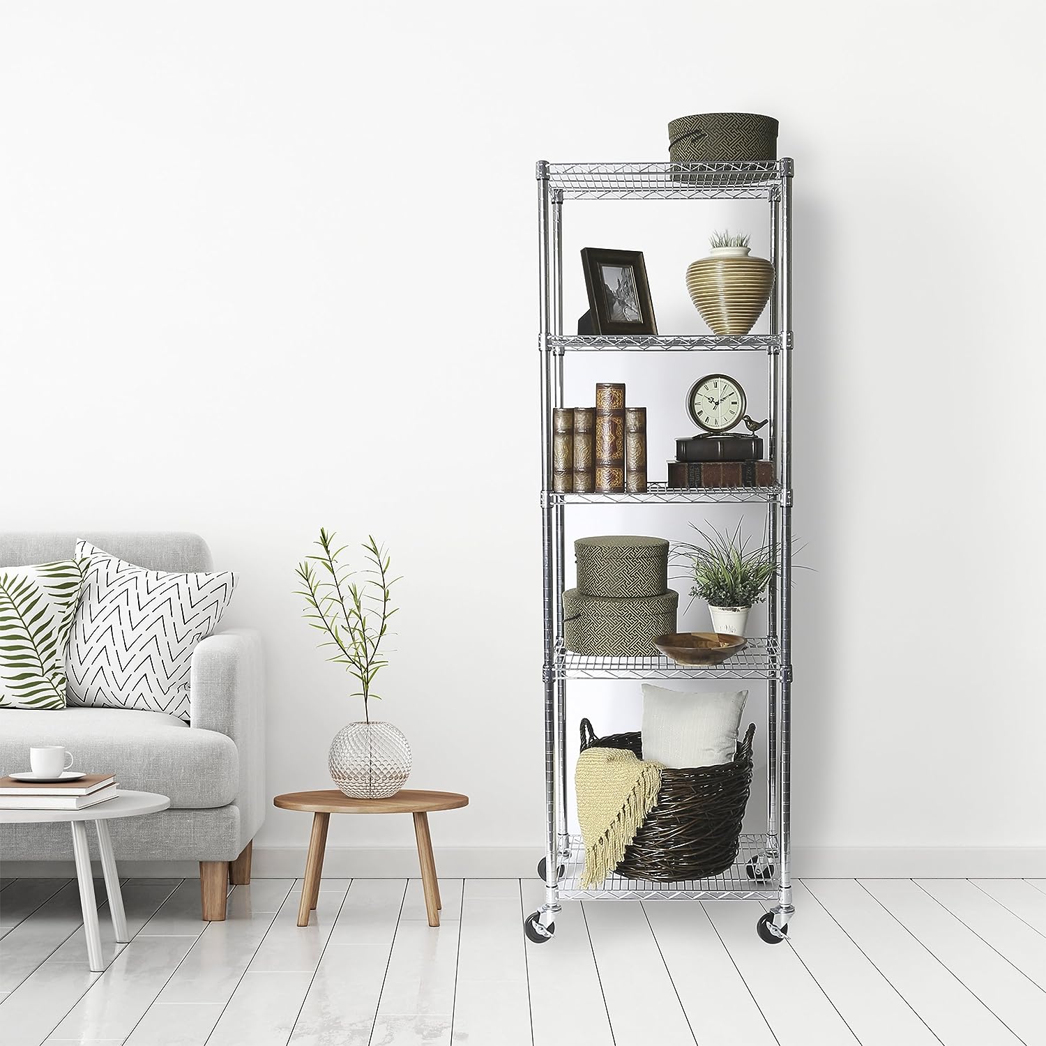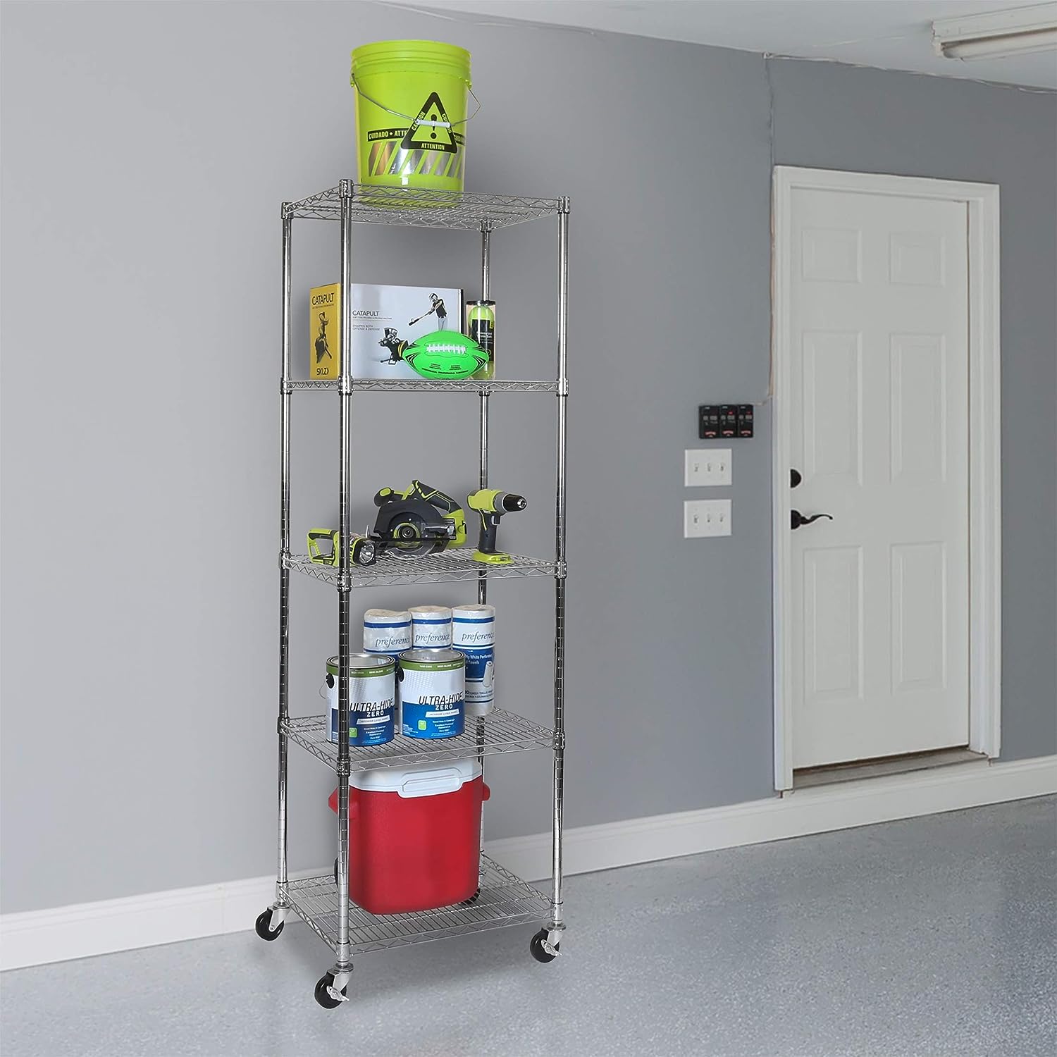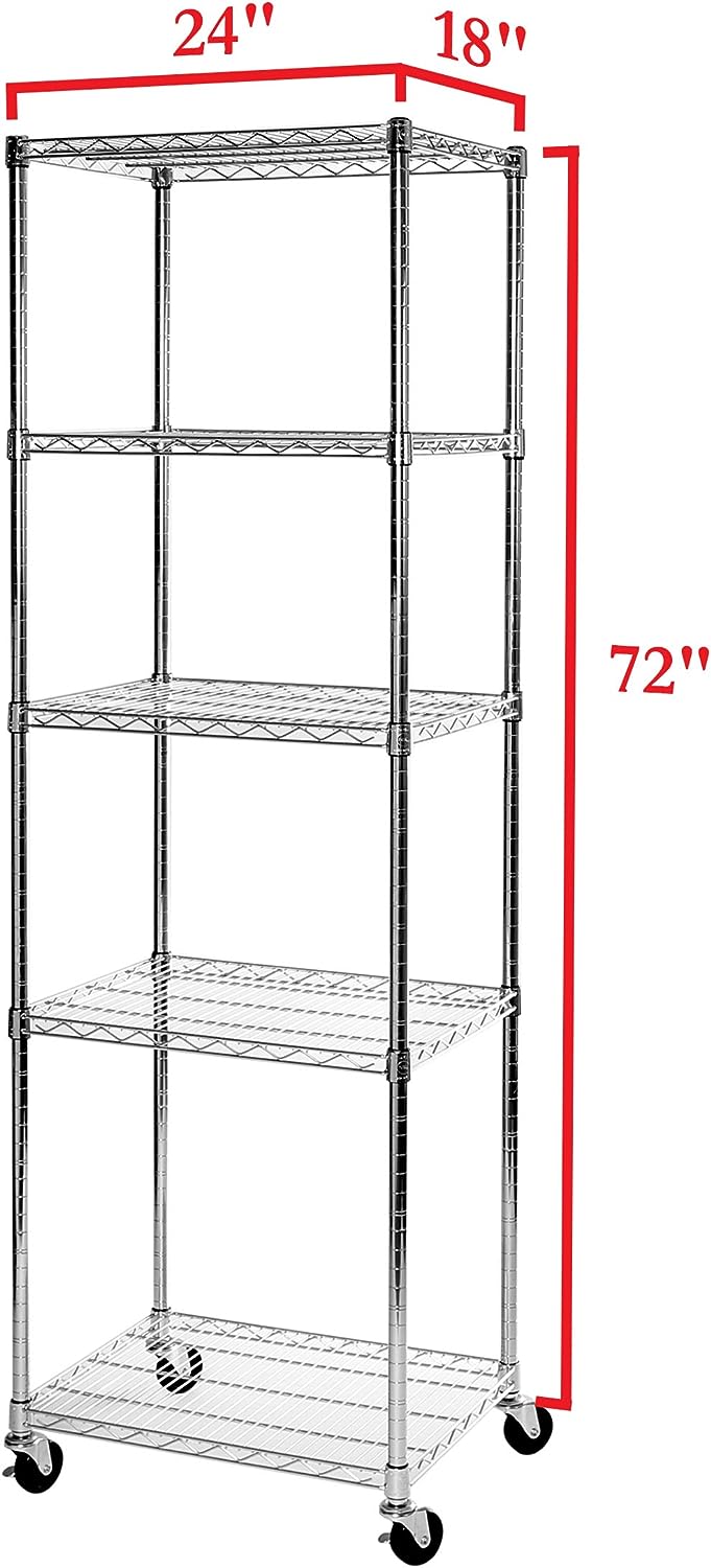 Seville Classics UltraDurable Heavy Duty NSF Solid Steel Wire Rack Storage Unit Organizer for Garage. Warehouse. Office. Restaurant. Classroom. Kitchen. 5-Tier Shelving. 24″ W x 18″ D
