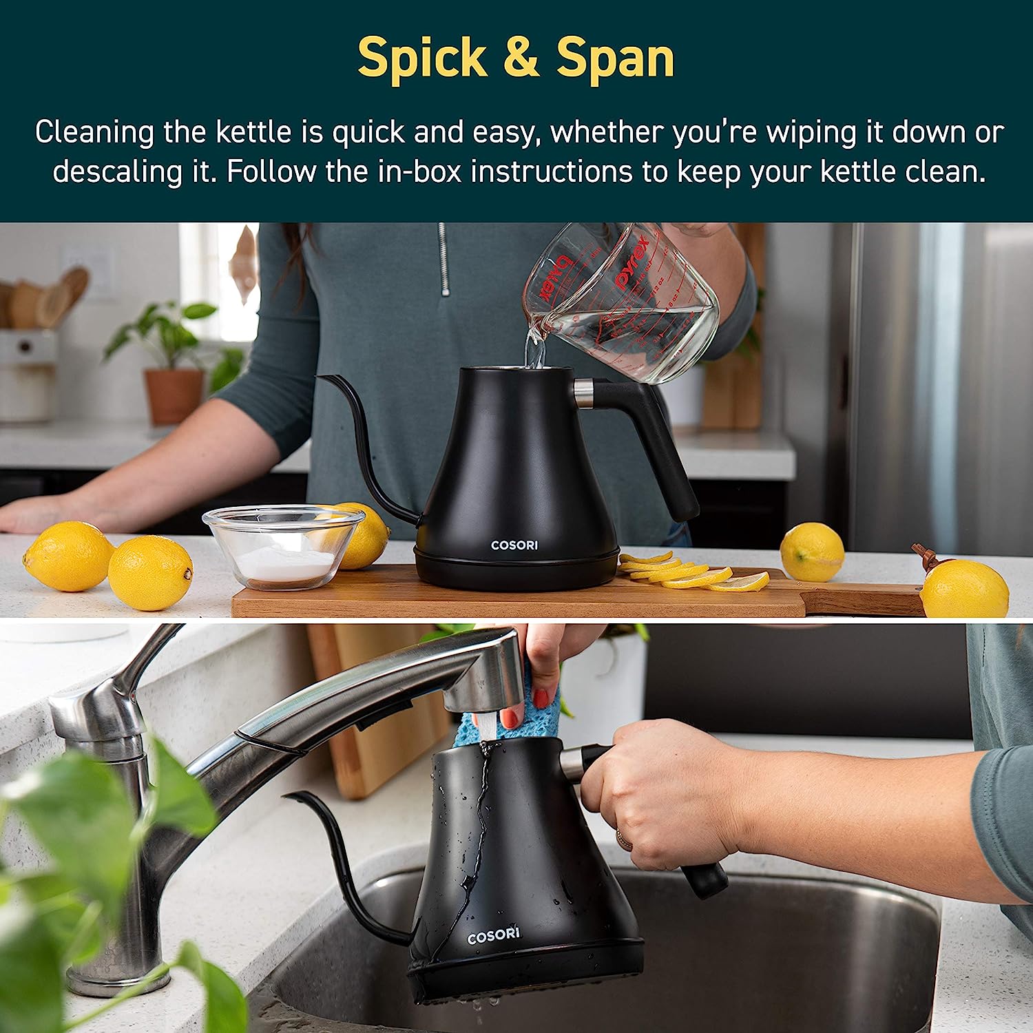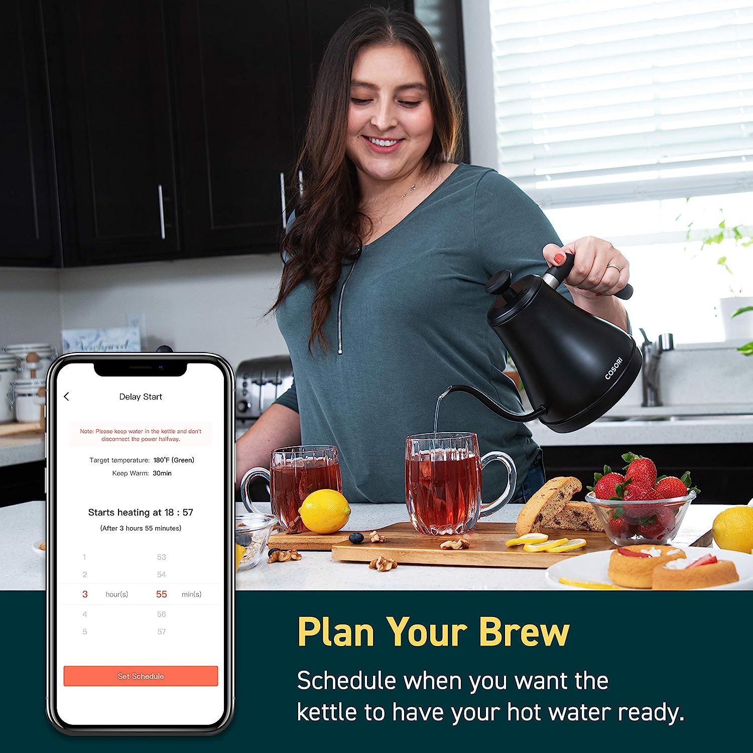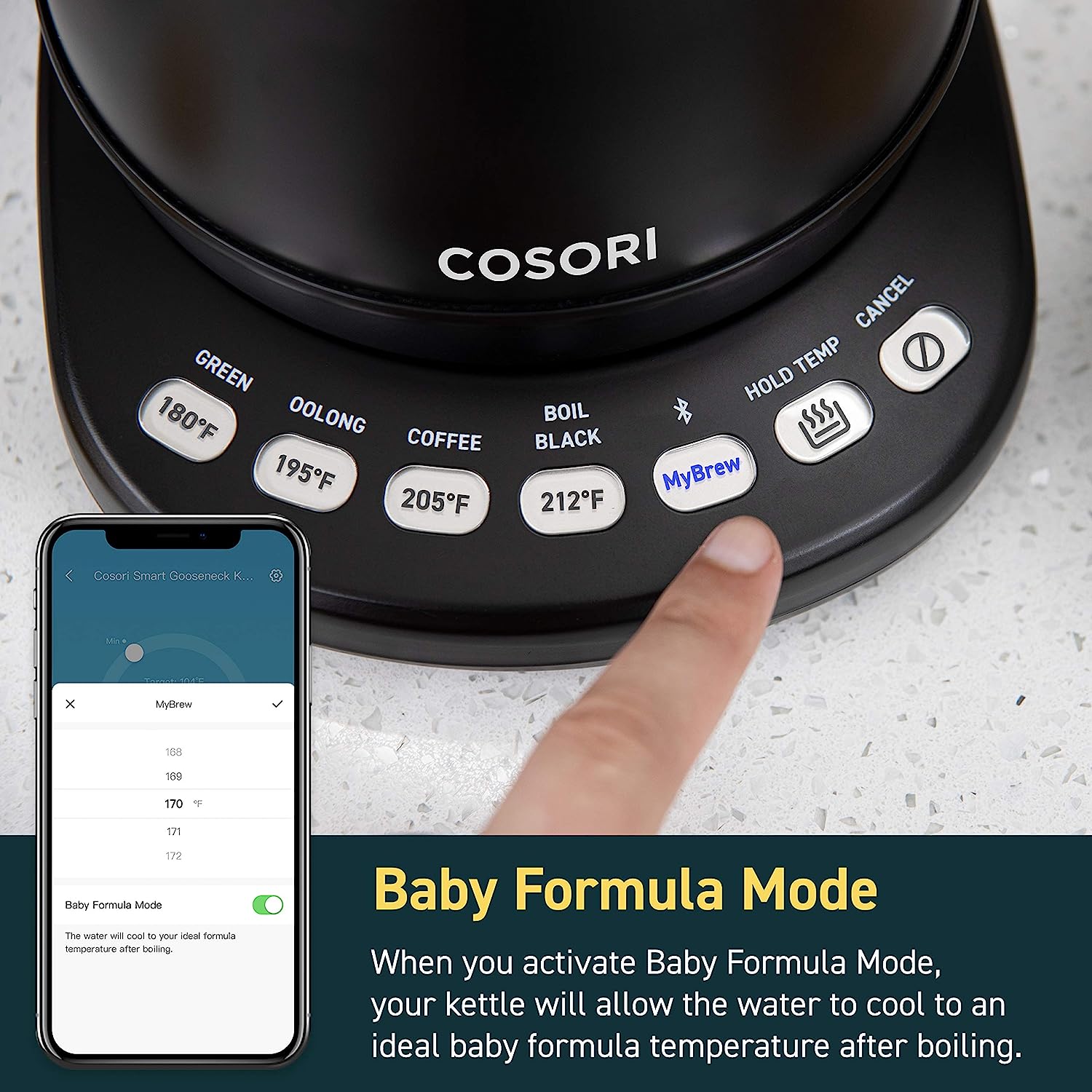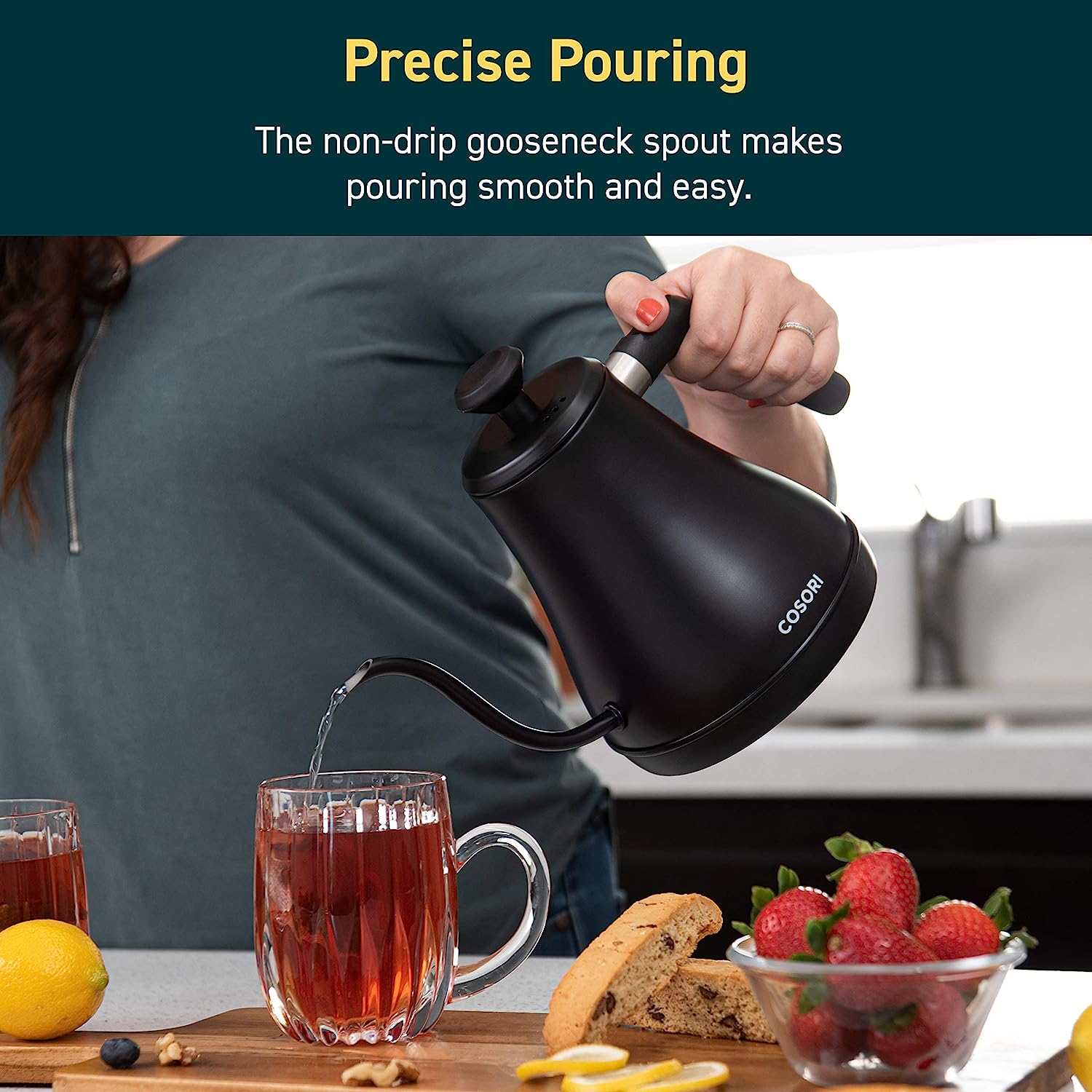 COSORI Electric Gooseneck Kettle Smart Bluetooth with Variable Temperature Control. Pour Over Coffee Kettle & Tea Kettle. 100% Stainless Steel Inner Lid & Bottom. Quick Heating. Matte Black