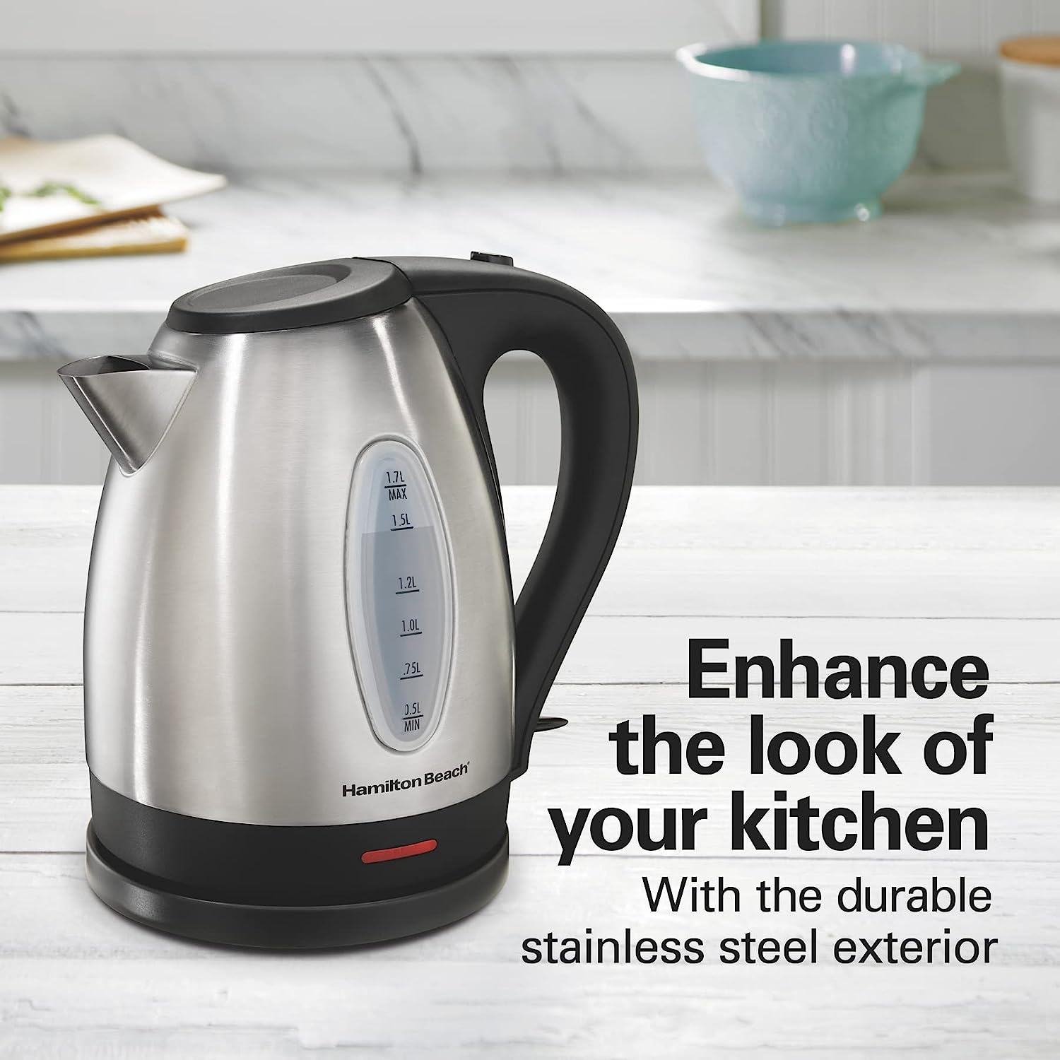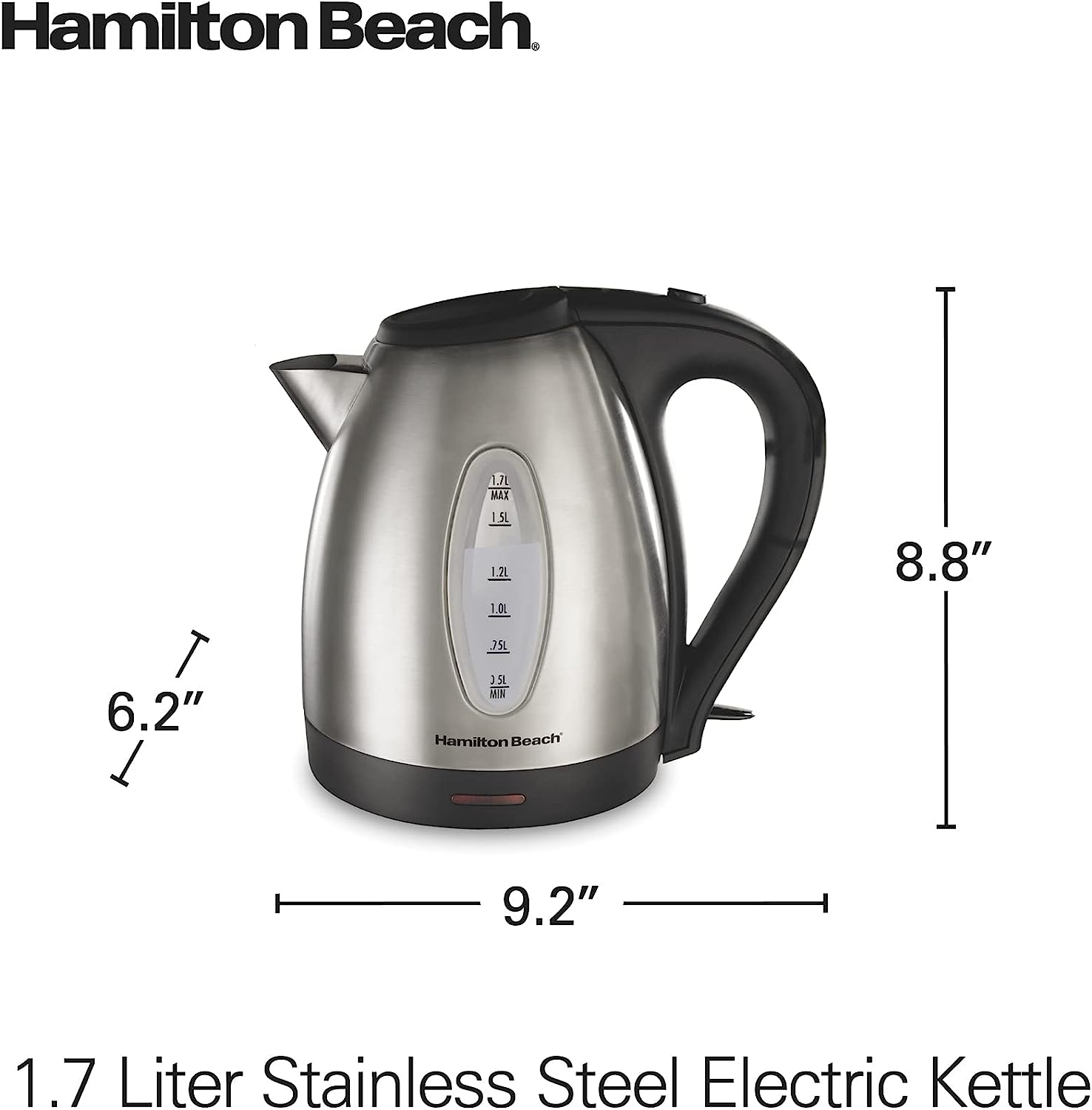 Hamilton Beach Electric Tea Kettle. Water Boiler & Heater. 1.7 Liter. Cordless Serving. 1500 Watts for Fast Boiling. Auto-Shutoff and Boil-Dry Protection. Stainless Steel (40880)