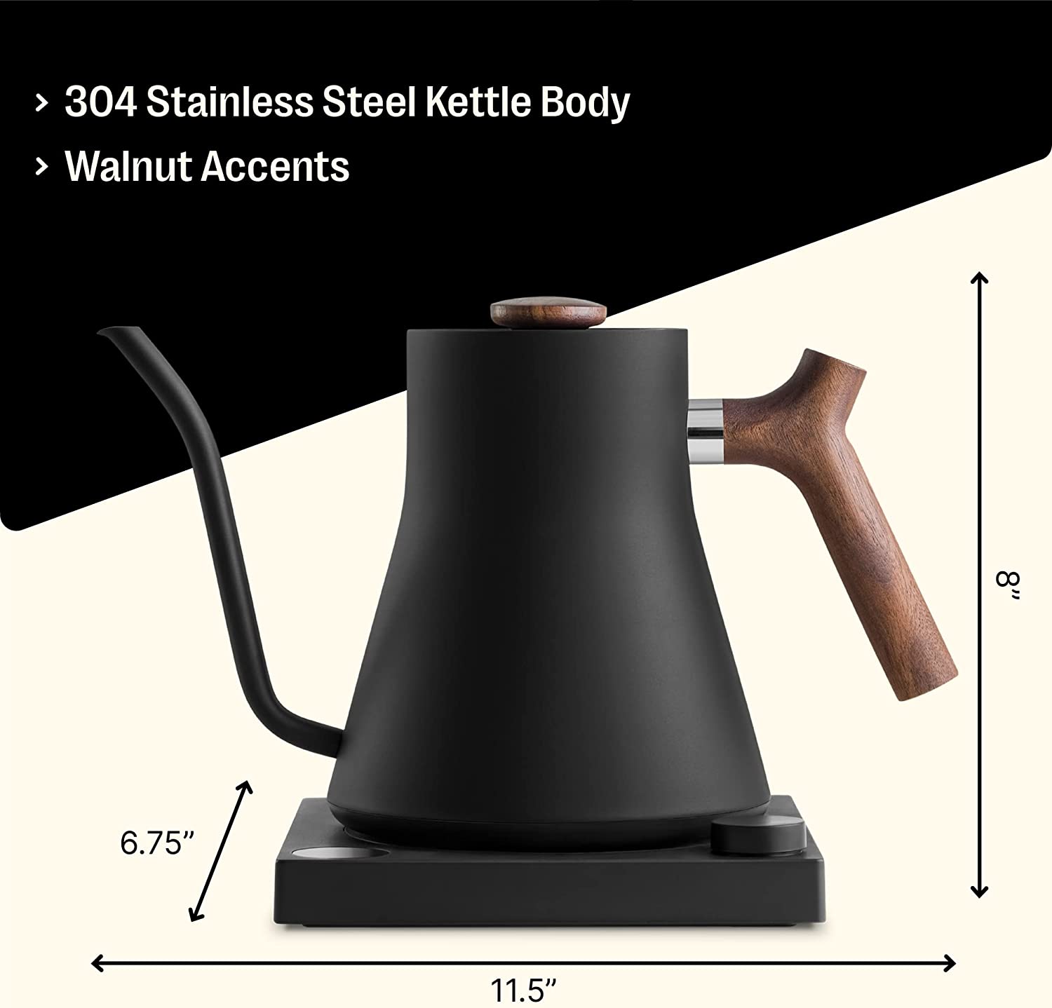 Fellow Stagg EKG Electric Gooseneck Kettle - Pour-Over Coffee and Tea Kettle - Stainless Steel Kettle Water Boiler - Quick Heating Electric Kettles for Boiling Water - Matte Black With Walnut Handle