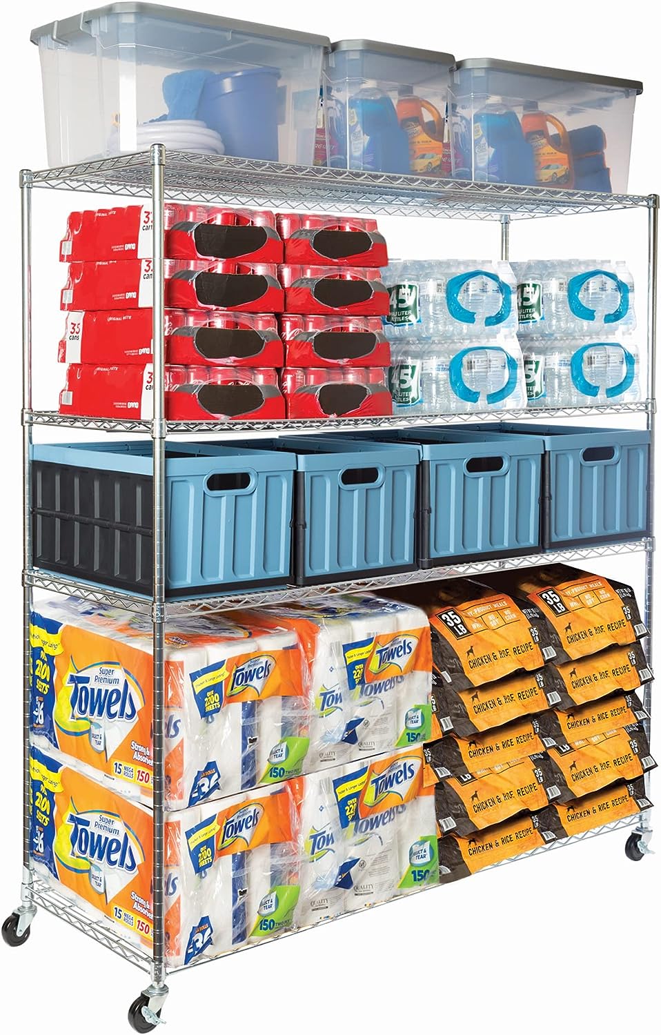 Seville Classics UltraDurable Heavy Duty NSF Solid Steel Wire Rack Storage Unit. Organizer for Garage. Warehouse. Office. Restaurant. Classroom. Kitchen. Steel. 4-Tier Shelving. 60″ W x 24″ D