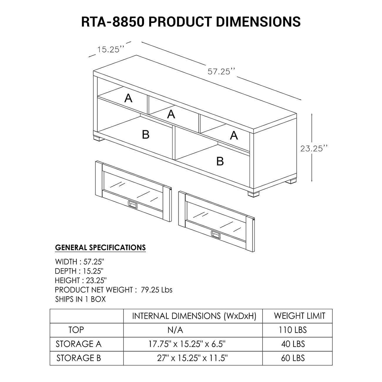 Techni Mobili 58″ Durbin TV Stand for TVs up to 75″. Gray