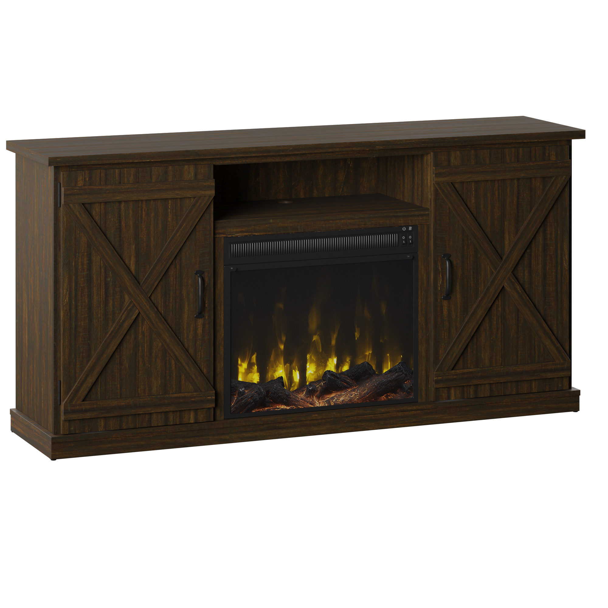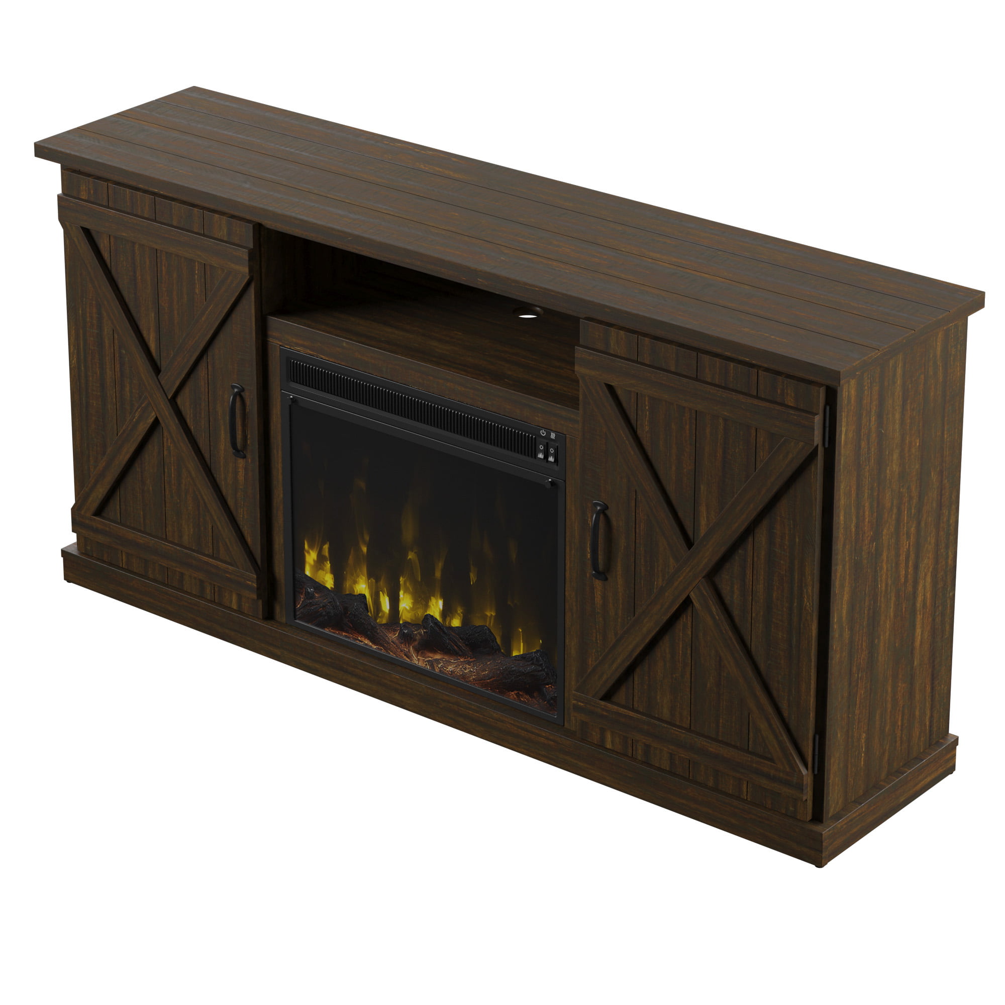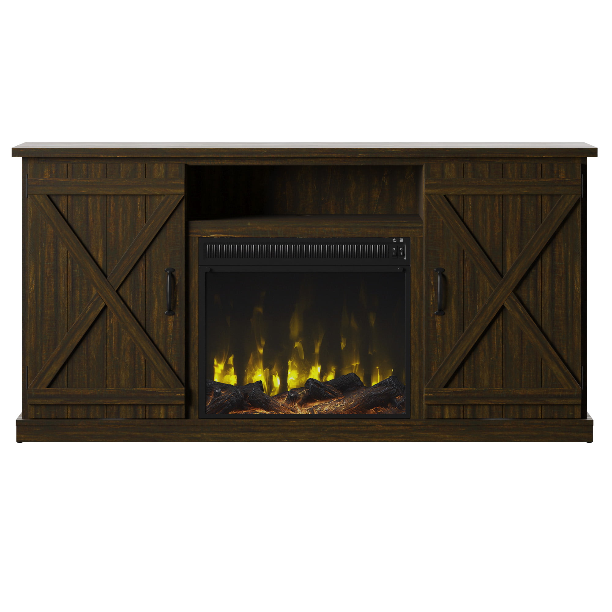 Twin Star Home Barn Door TV Stand for TVs up to 70 inches with ClassicFlame Electric Fireplace. Sawcut Espresso