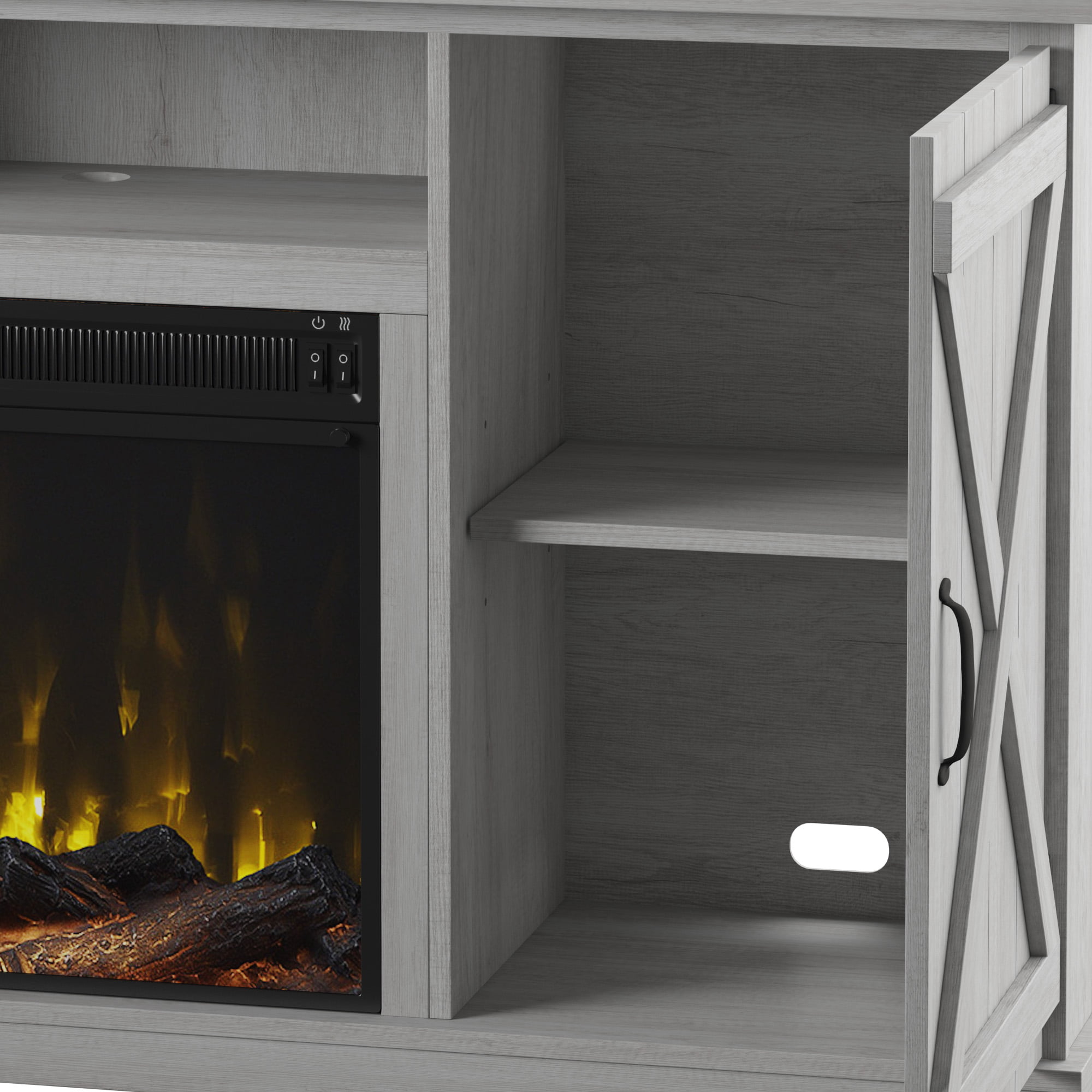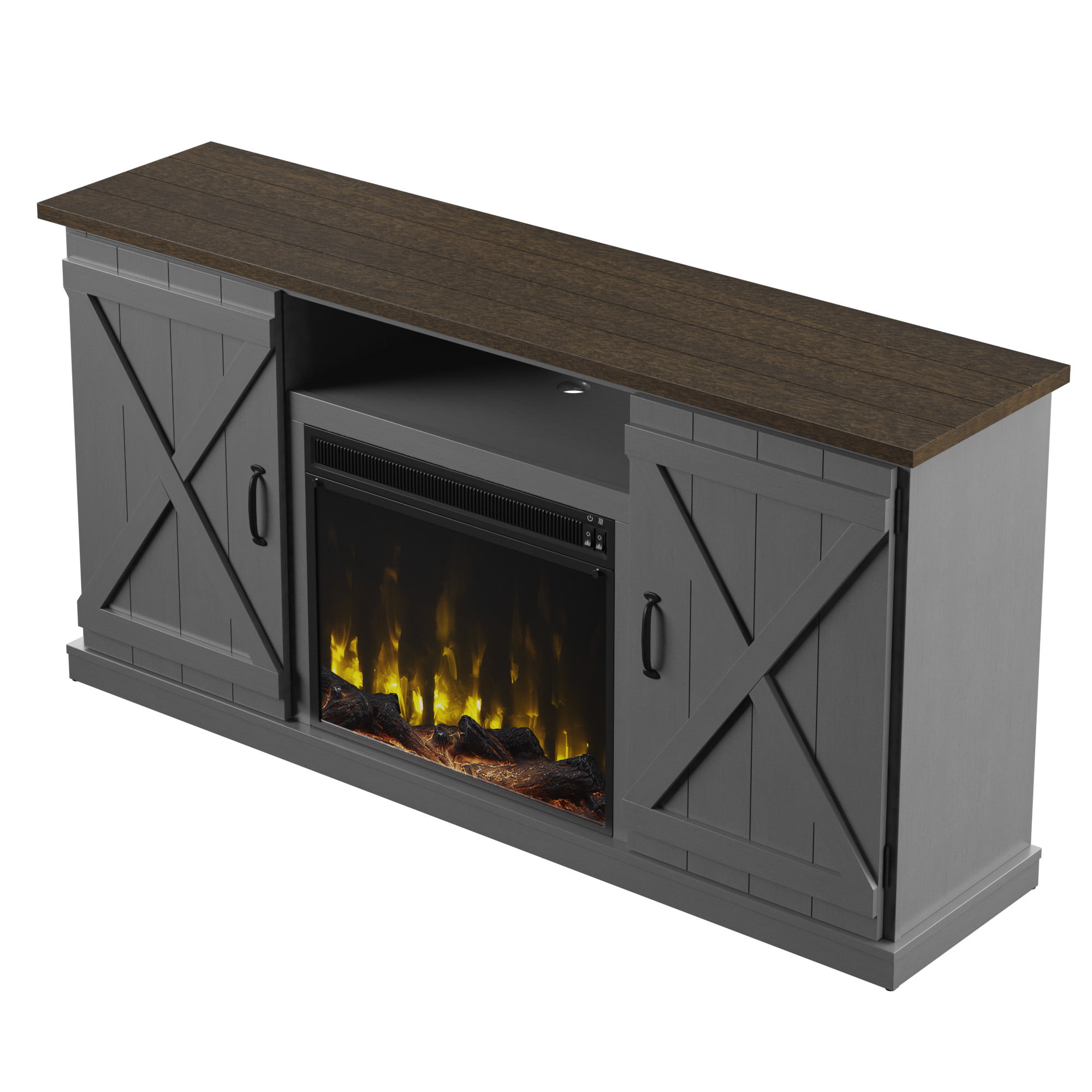 Twin Star Home Barn Door TV Stand for TVs up to 70 inches with ClassicFlame Electric Fireplace. Antique Gray