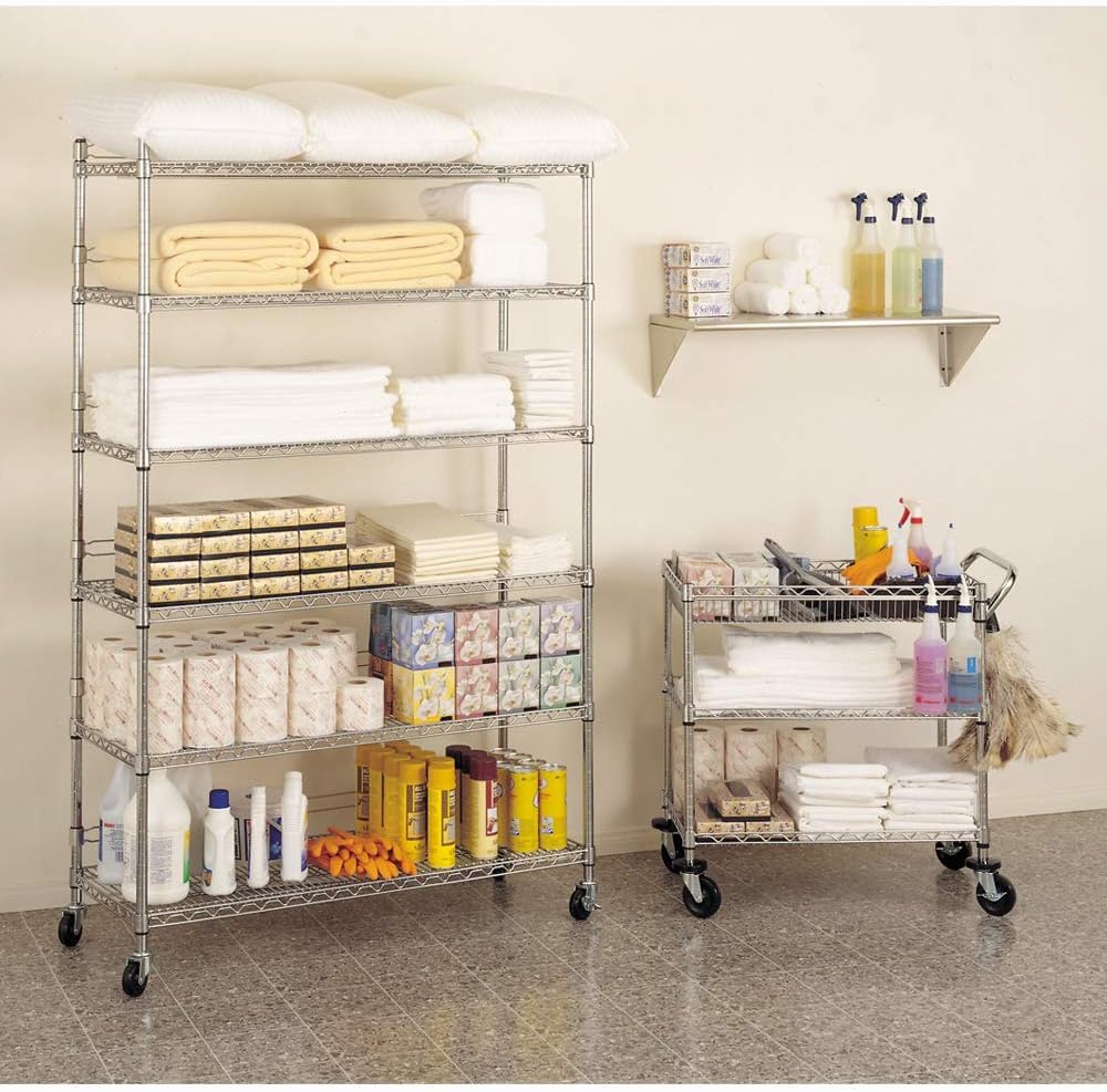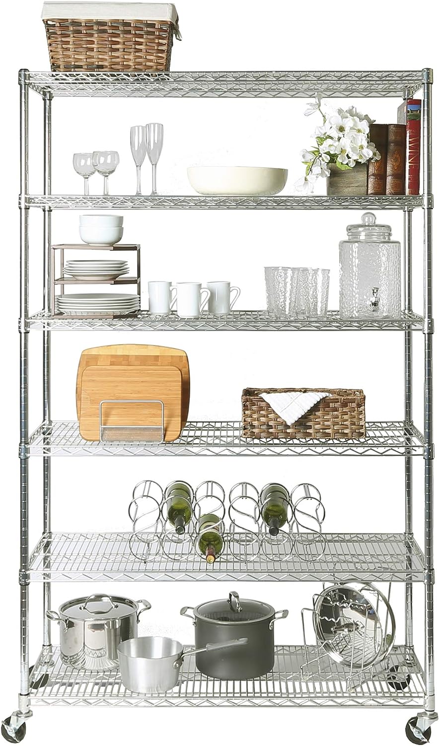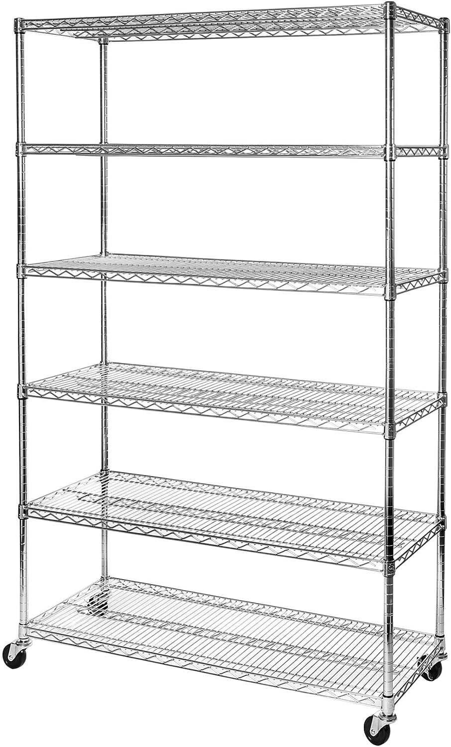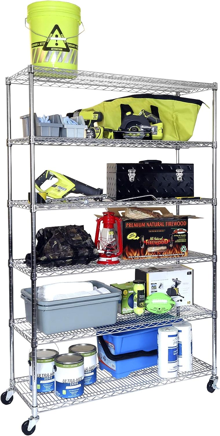 Seville Classics UltraDurable Heavy Duty NSF Solid Steel Wire Rack Storage Unit Wheels. 6-Tier Shelving. 48″ W x 18″ D