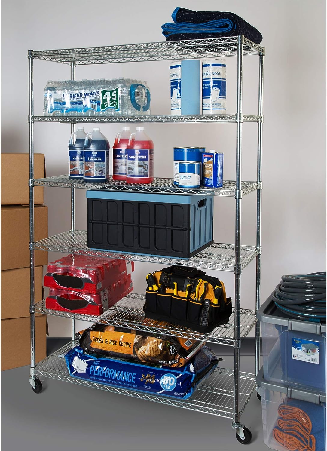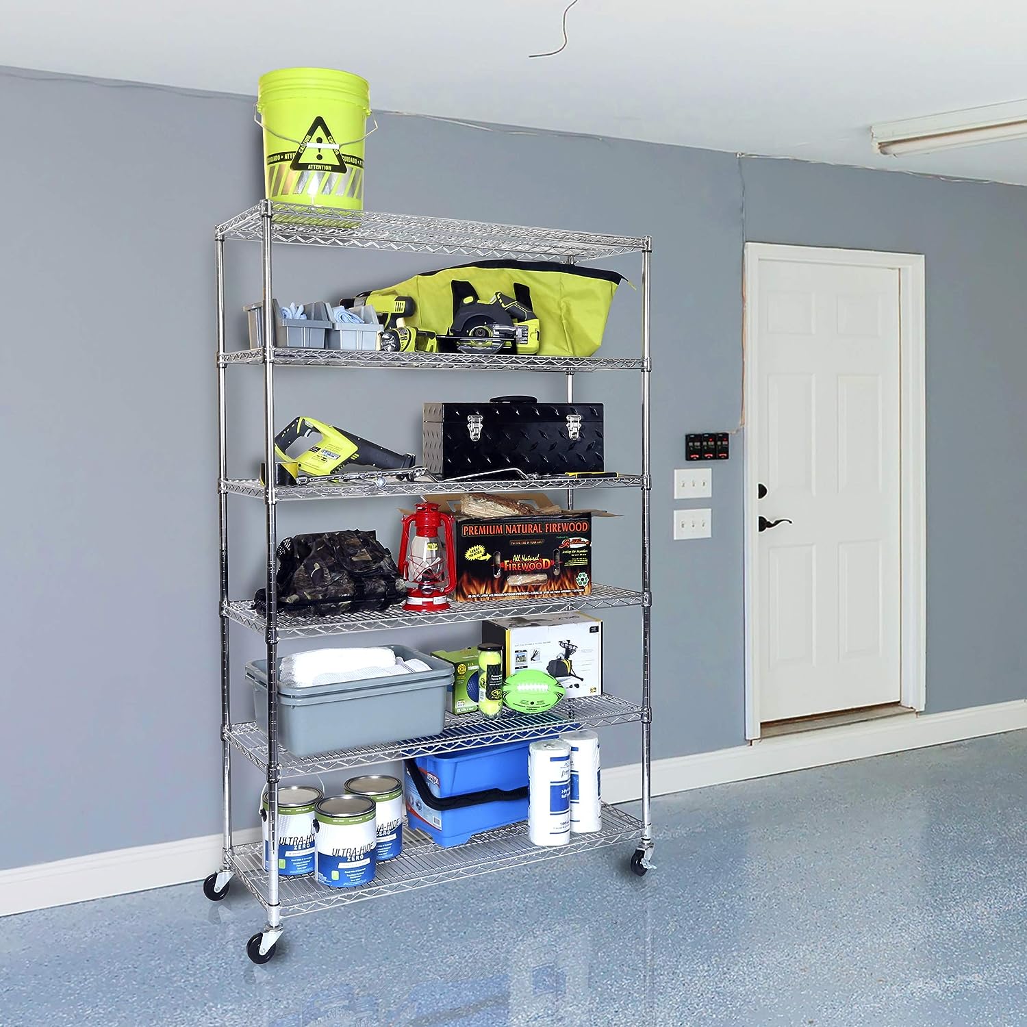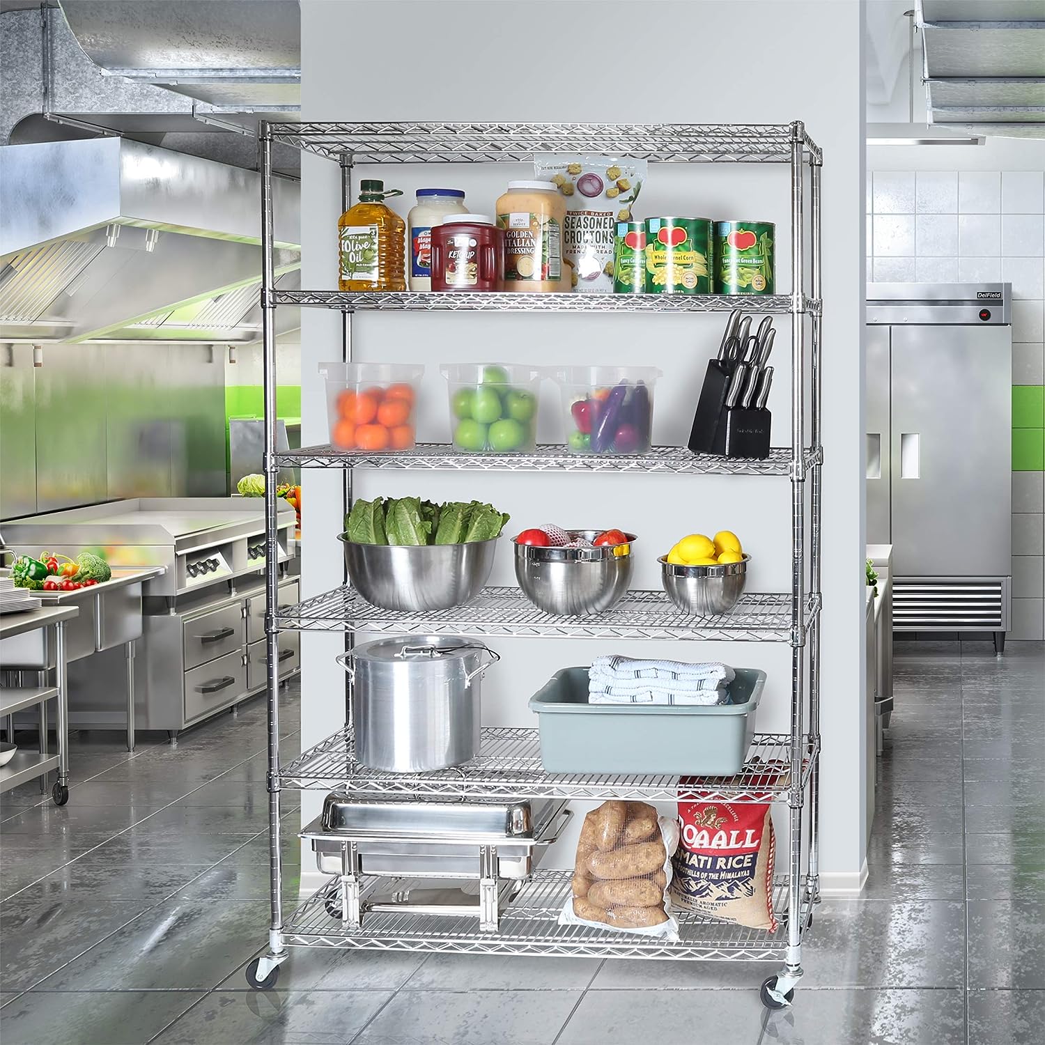 Seville Classics UltraDurable Heavy Duty NSF Solid Steel Wire Rack Storage Unit Wheels. 6-Tier Shelving. 48″ W x 18″ D