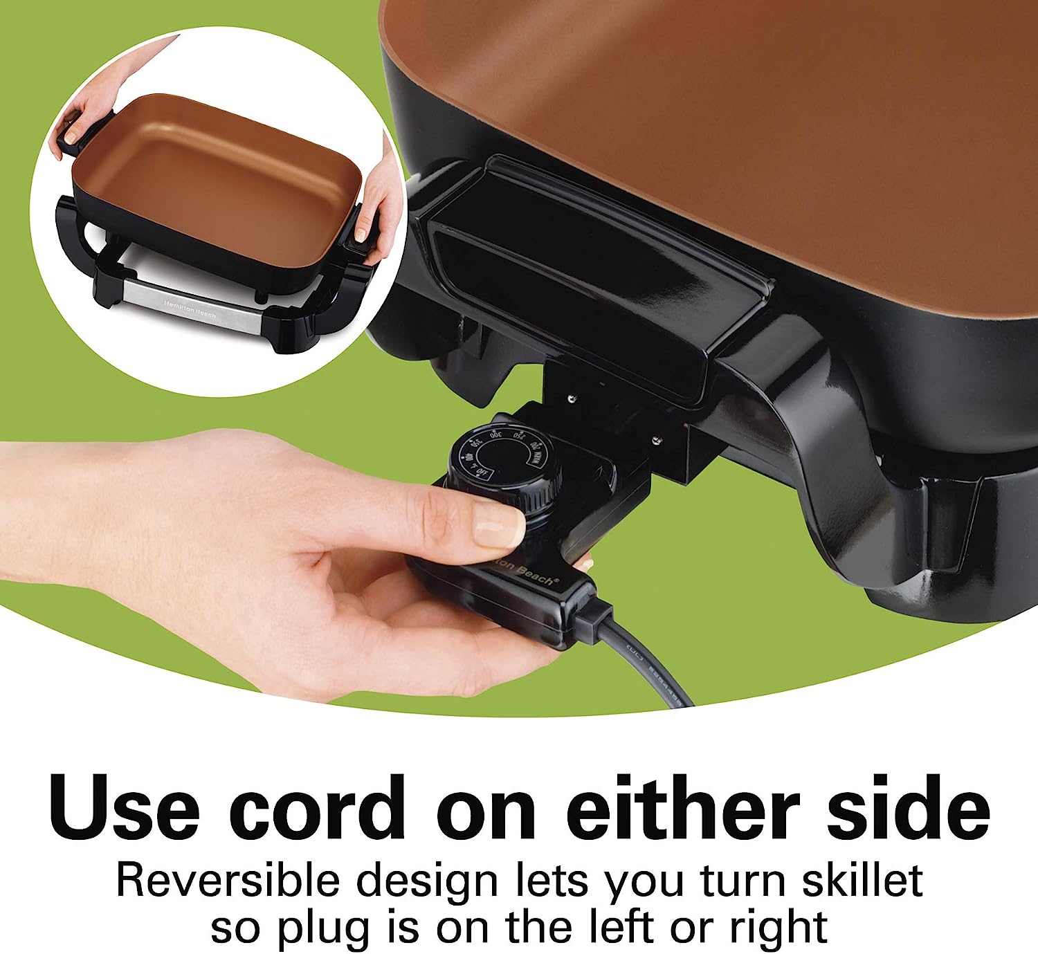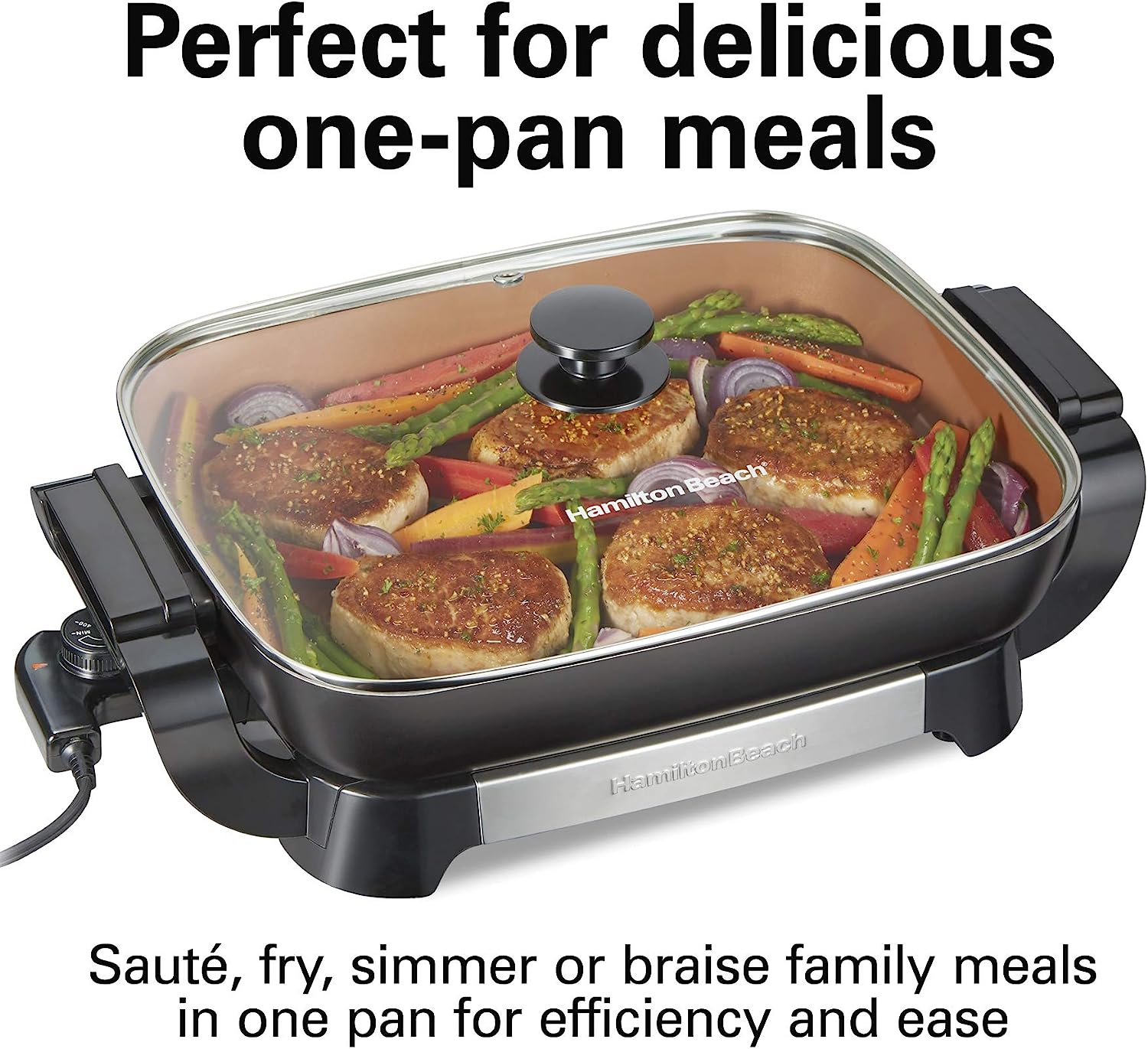 Hamilton Beach Durathon Ceramic Electric Skillet with Removable 12×15 Pan. Adjustable Temperature. Reversible Design. Tempered Glass Lid (38529K)