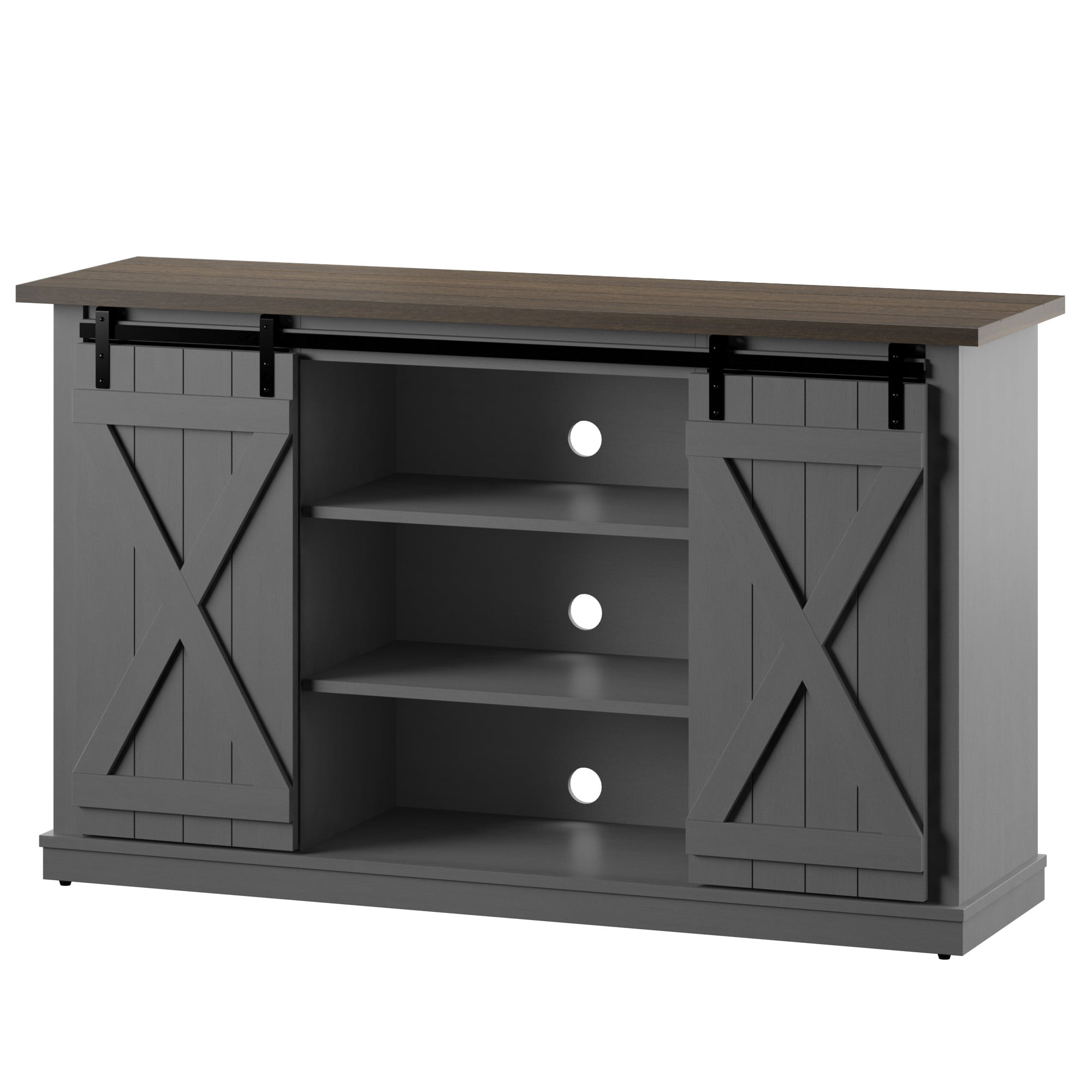Twin Star Home Terryville Barn Door TV Stand for TVs up to 60″. Dark Gray