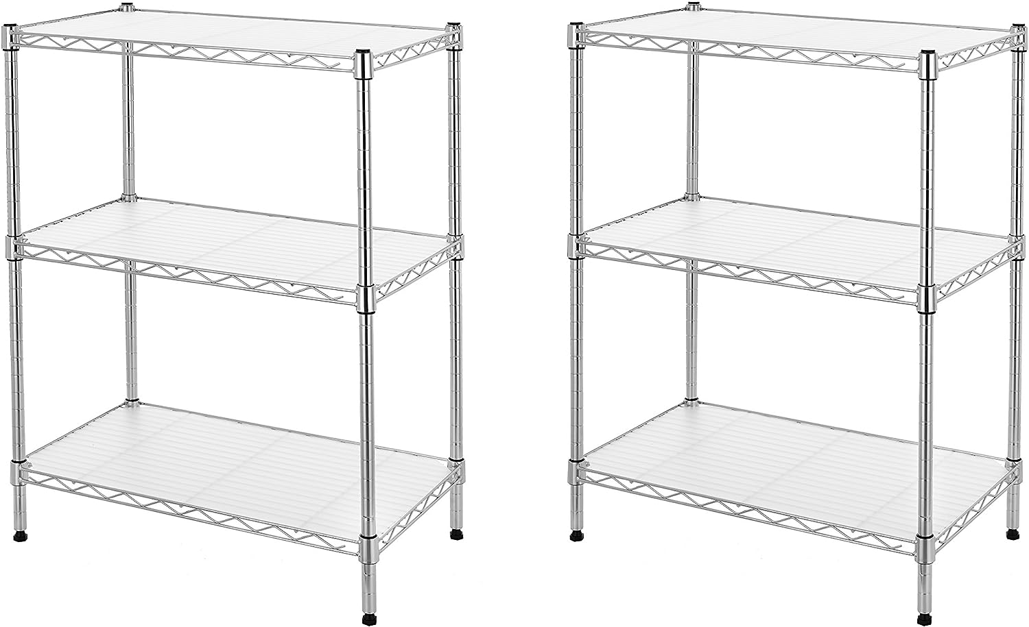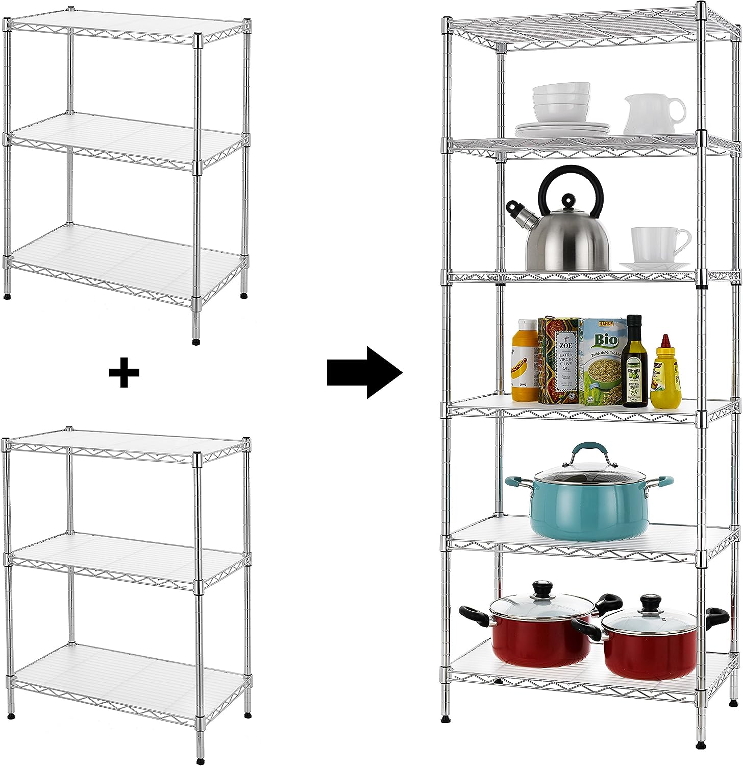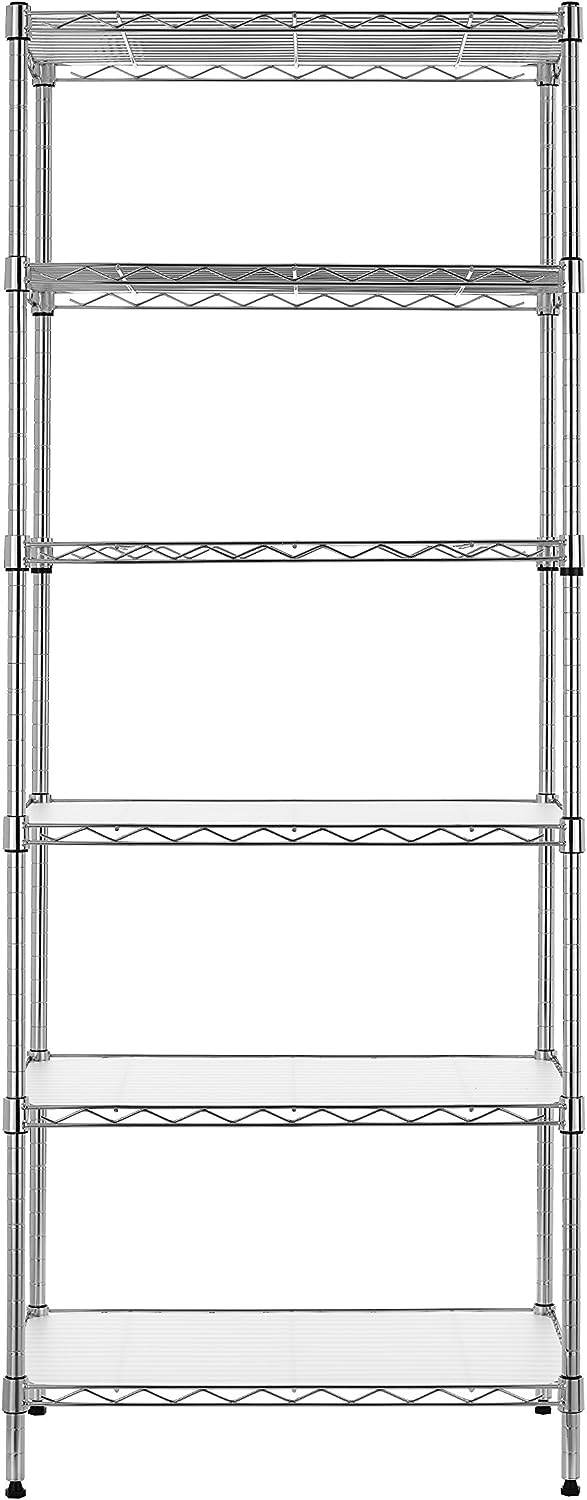 Finnhomy 6-Tier Wire Shelving Unit Adjustable Steel Wire Rack Shelving 6 Shelves Steel Storage Rack or Two 3 Tier Shelving Units with PE mat and Stable Leveling Feet. NSF Certified. Chrome