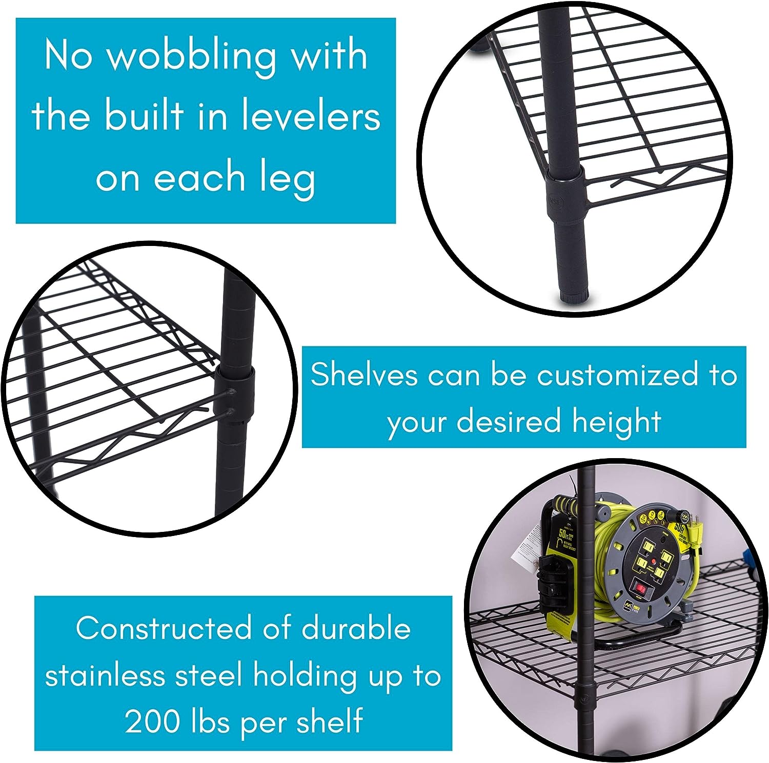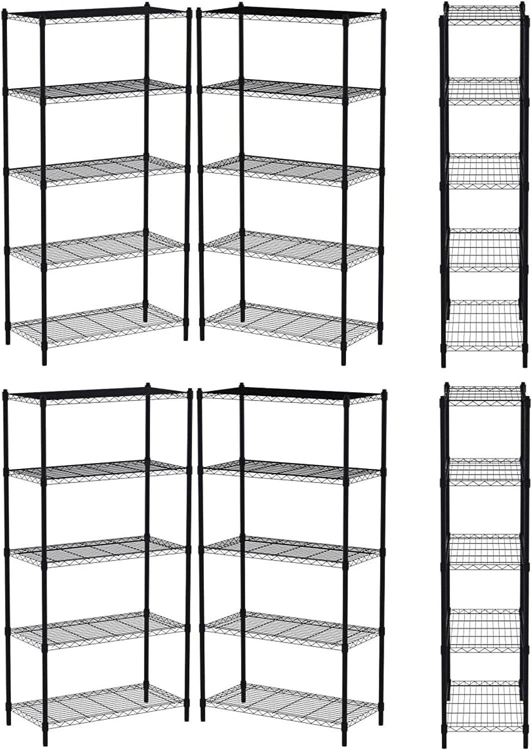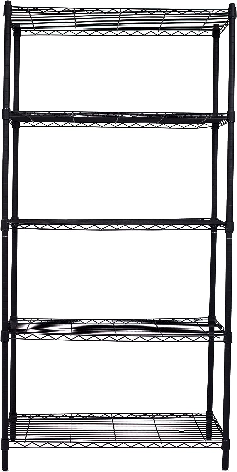Internet-s Best 5-Tier Wire Shelving - Flat Black - Heavy Duty Shelf - Wide Adjustable Rack Unit - Kitchen Storage