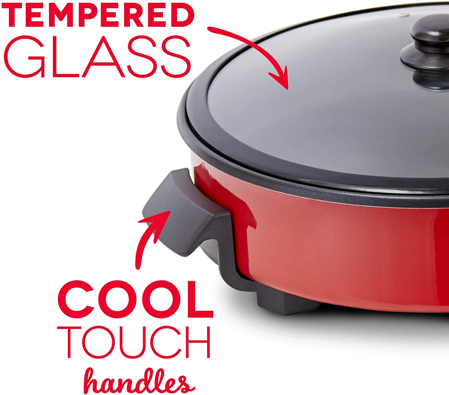 DASH Family Size Electric Skillet with 14 inch Nonstick Surface + Recipe Book for Pizza. Burgers. Cookies. Fajitas. Breakfast & More. 20 Cup Capacity. 1400-Watt - Red