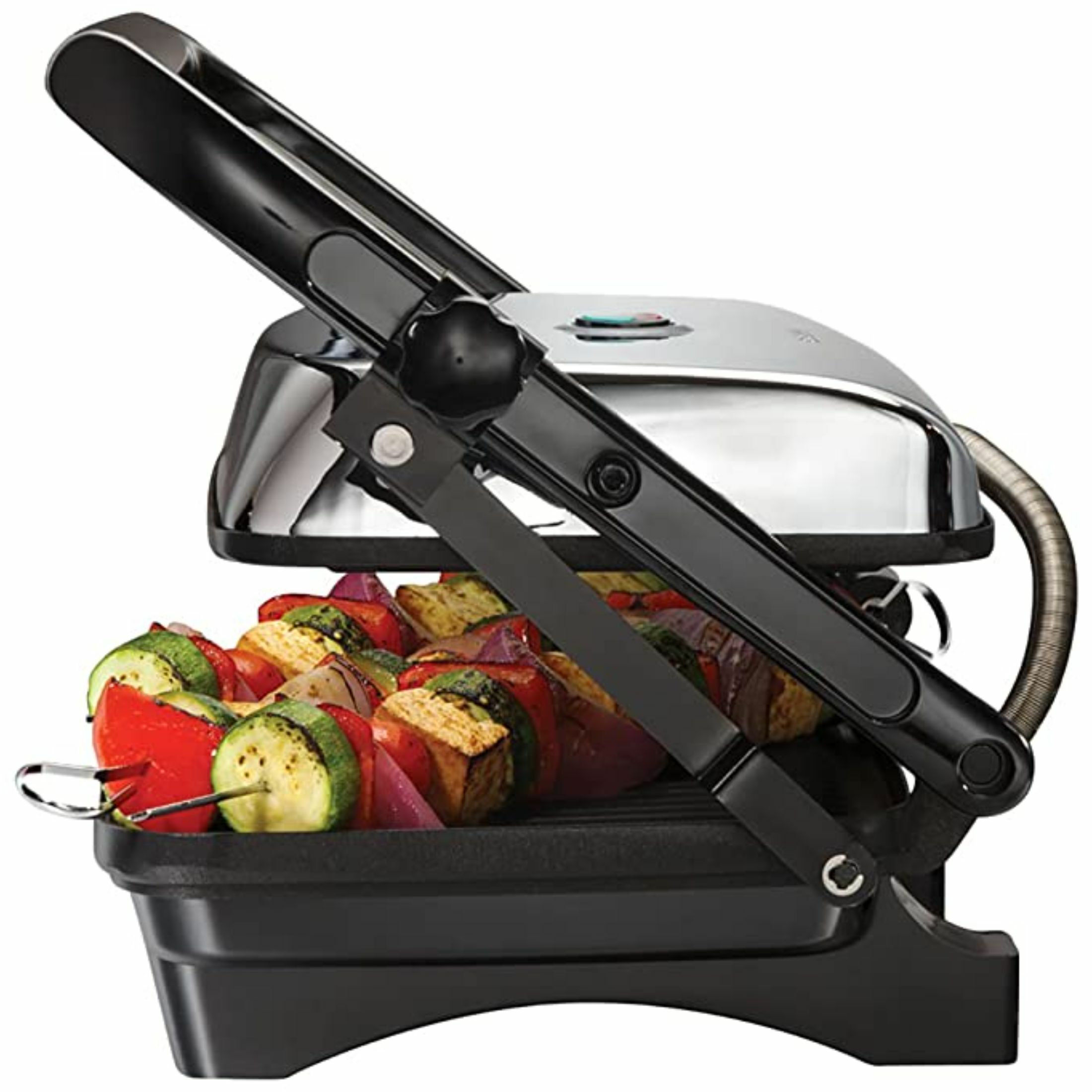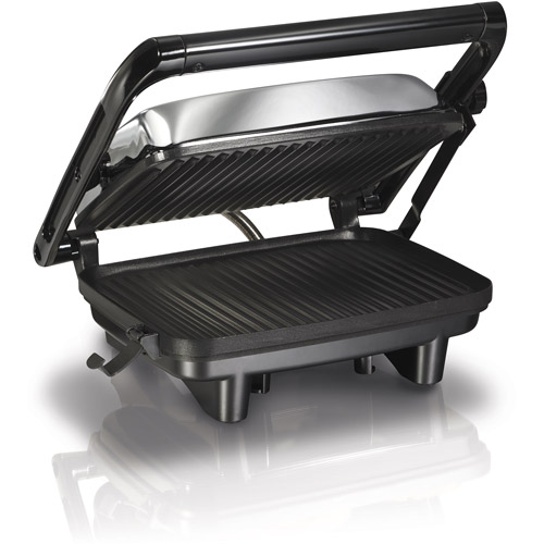 Hamilton Beach 1400-Watt Panini Press Gourmet Sandwich Maker - Chrome. Black