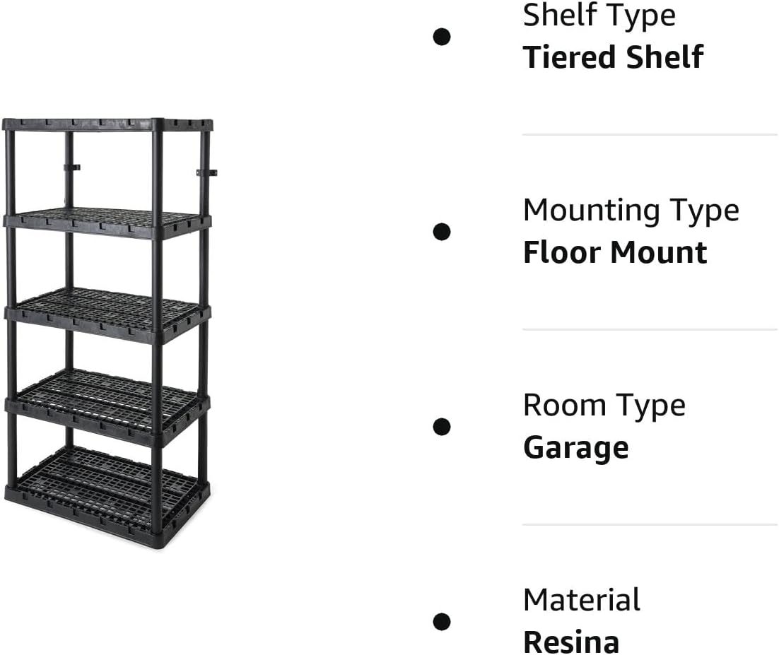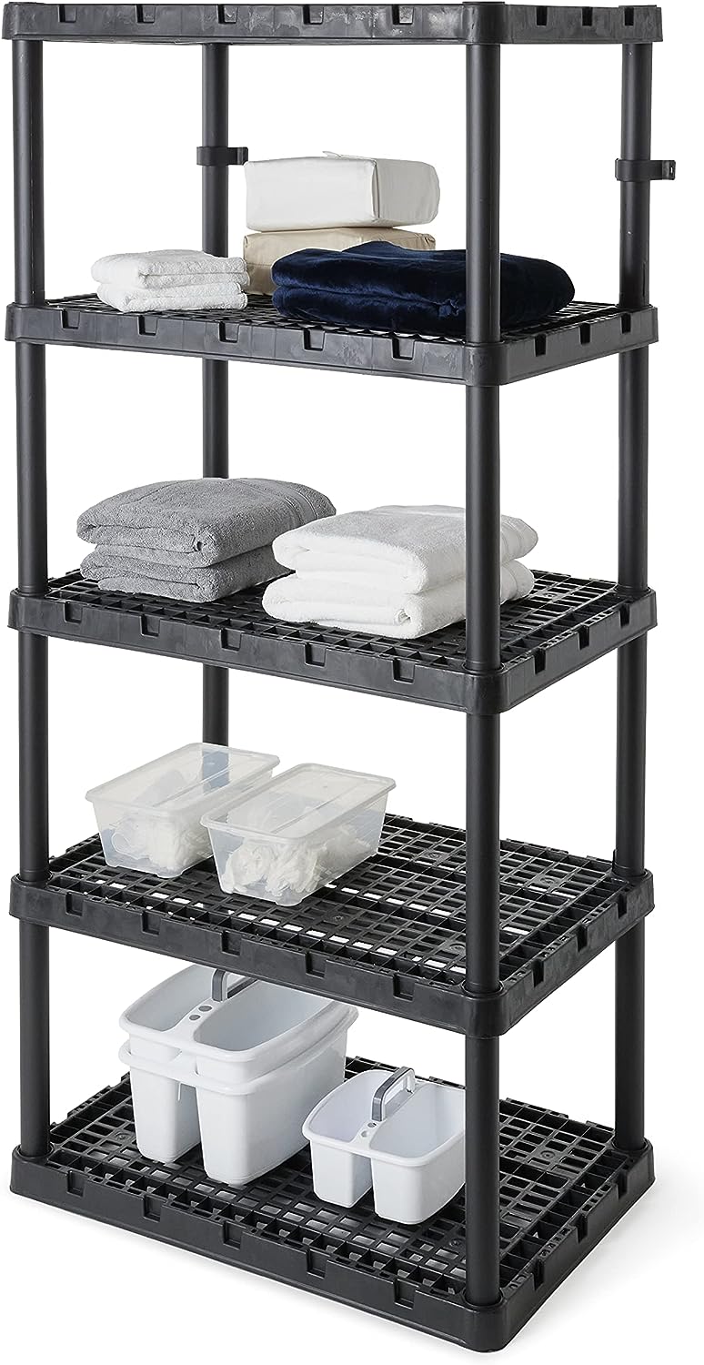 Gracious Living 5 Shelf Knect-A-Shelf Ventilated Extra Heavy Duty Storage Unit 24 x 36 x 72 Organizer System for Home. Garage. Basement & Laundry. Black