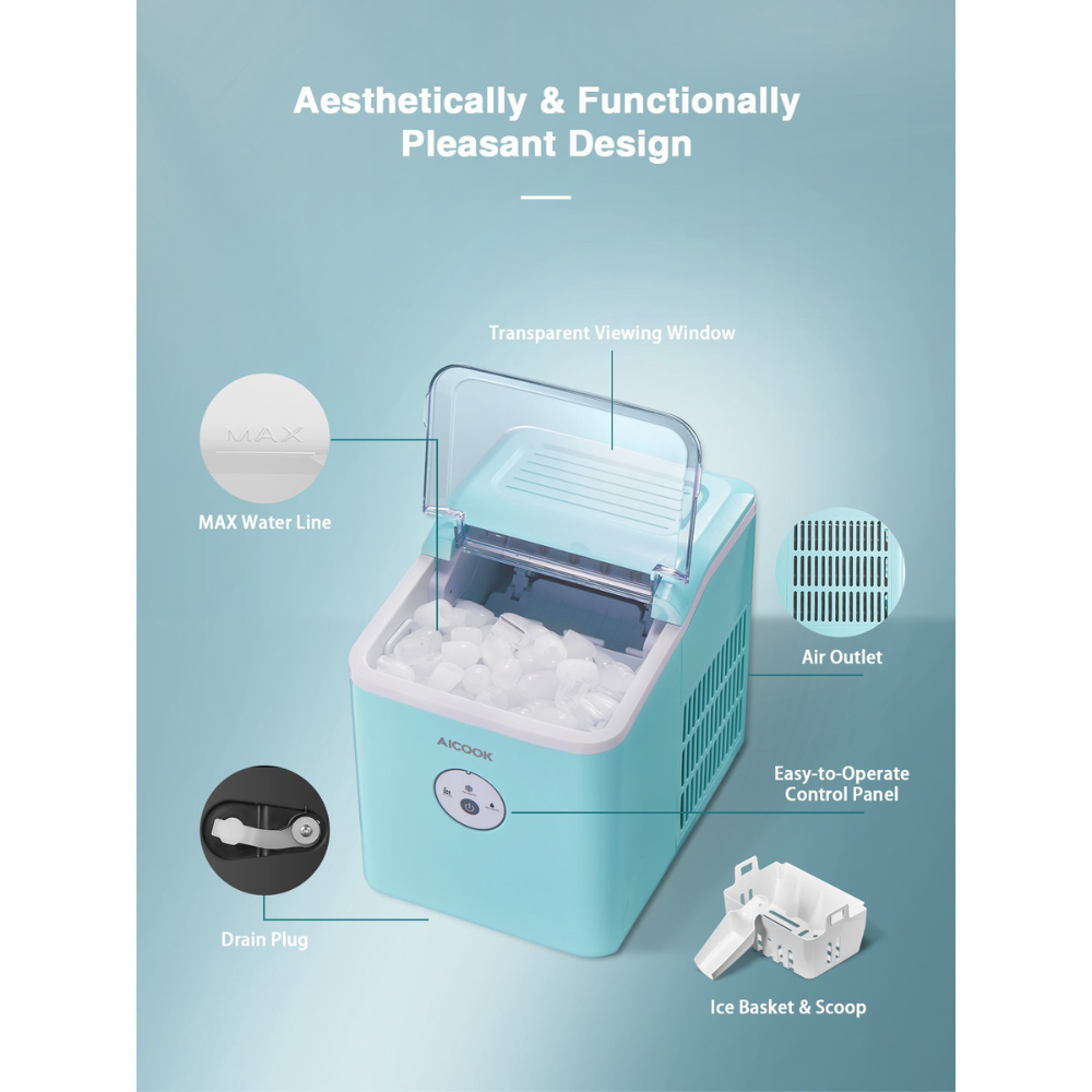 Igloo 26-Pound Automatic Self-Cleaning Portable Countertop Ice Maker Machine with Handle. Aqua