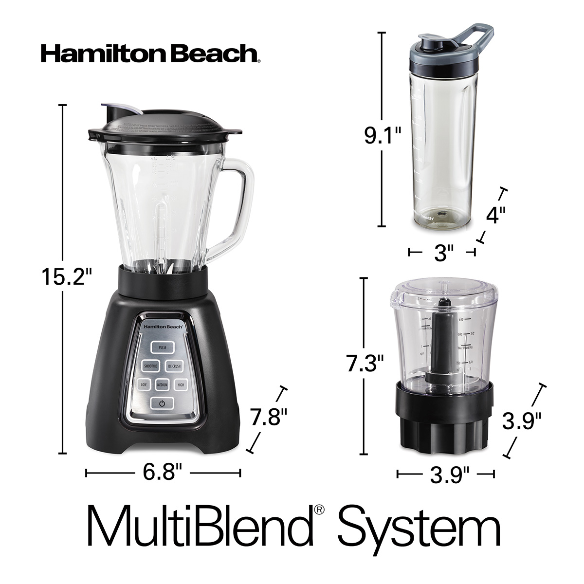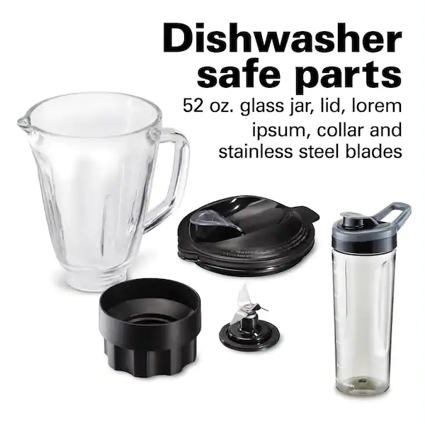 Hamilton Beach 58242 MultiBlend System with Glass Jar. Food Chopper Attachment and Travel Jar. 950 Watt Peak-Power Motor