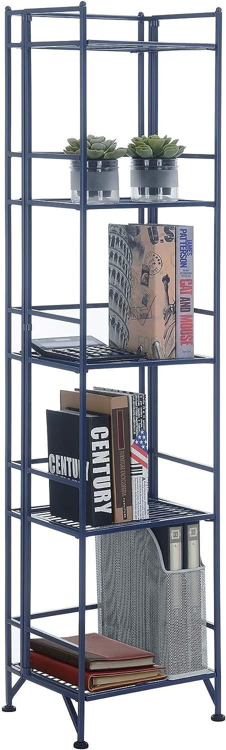 Convenience Concepts Xtra Storage Shelves - 5-Tier Folding Metal Shelving. Modern Shelves for Storage and Display in Living Room. Bathroom. Office. Kitchen. Garage. Cobalt Blue