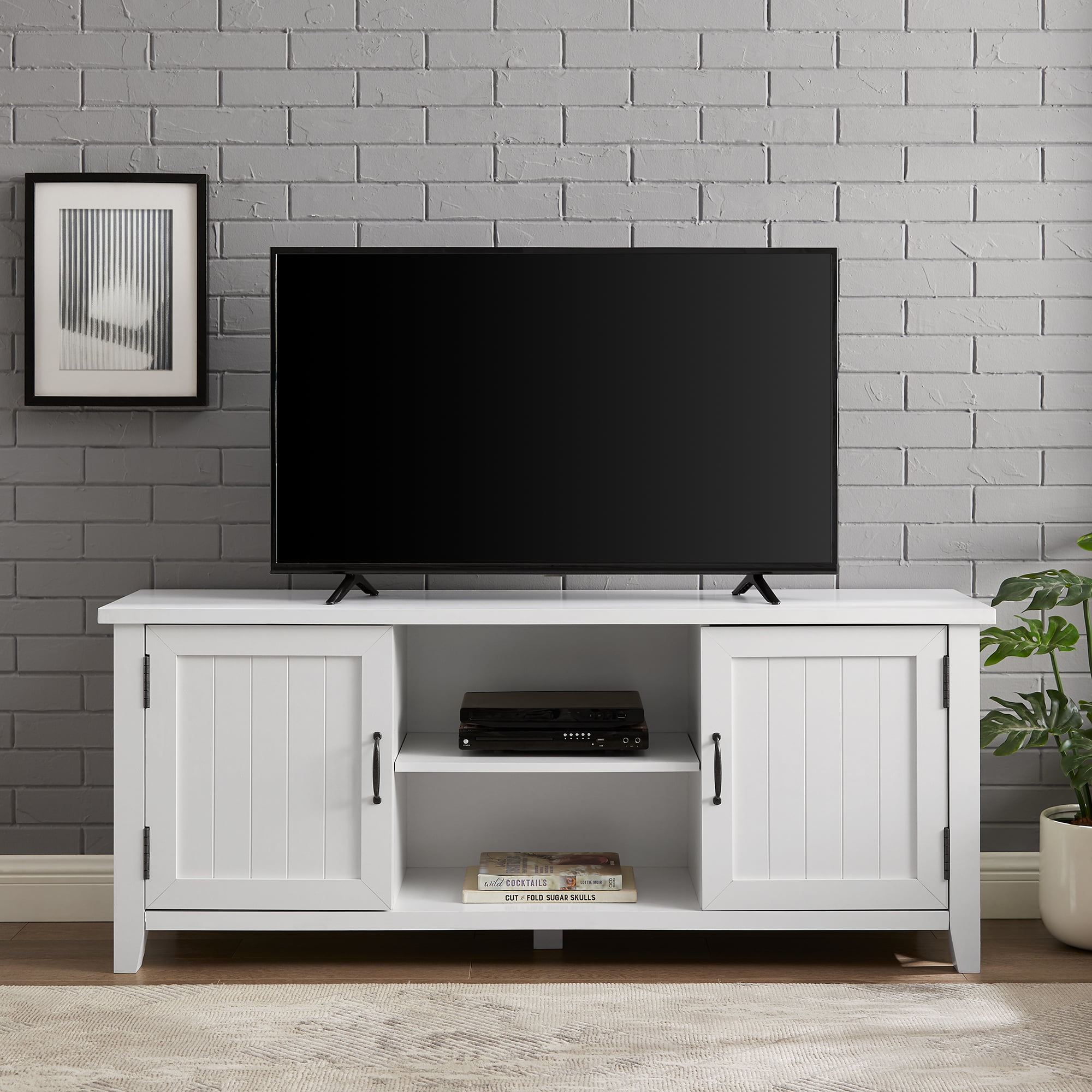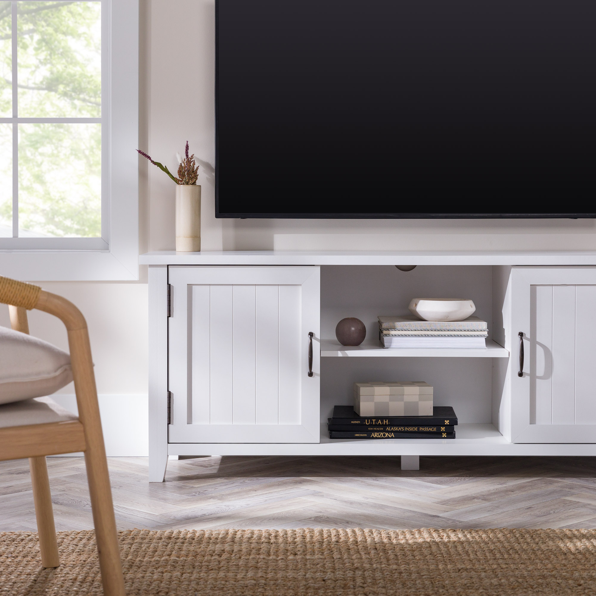 Woven Paths Franklin Grooved 2-Door TV Stand for TVs up to 65″. White