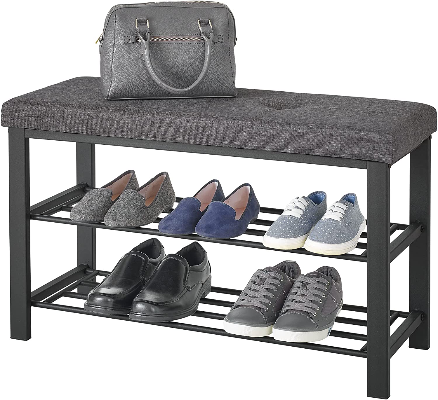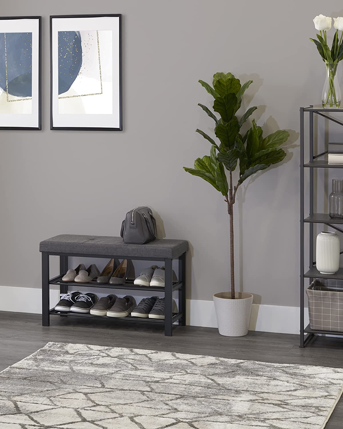 neatfreak Shoe Storage Bench Foam Padded Upholstered Cushion - 2 Storage Shelves