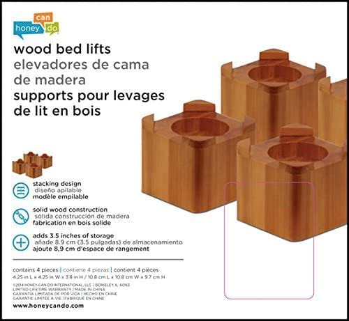 Honey-Can-Do STO-01150 Wood Bed Lifts-Light Finish. 4-Pack. Maple. 4 Count