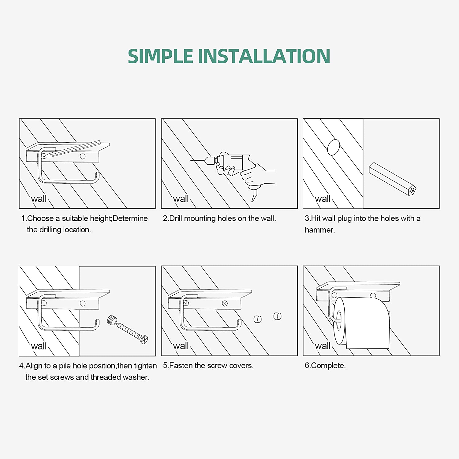 UDENIS Toilet Paper Roll Holder with Phone Shelf Wall Mounted