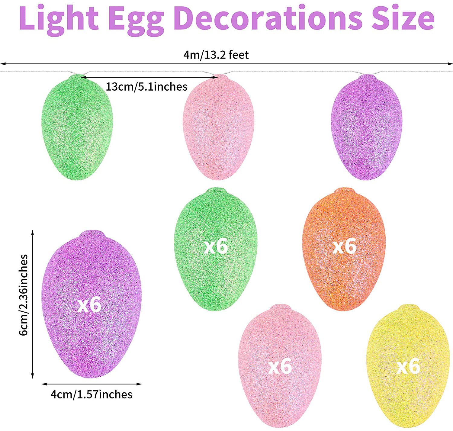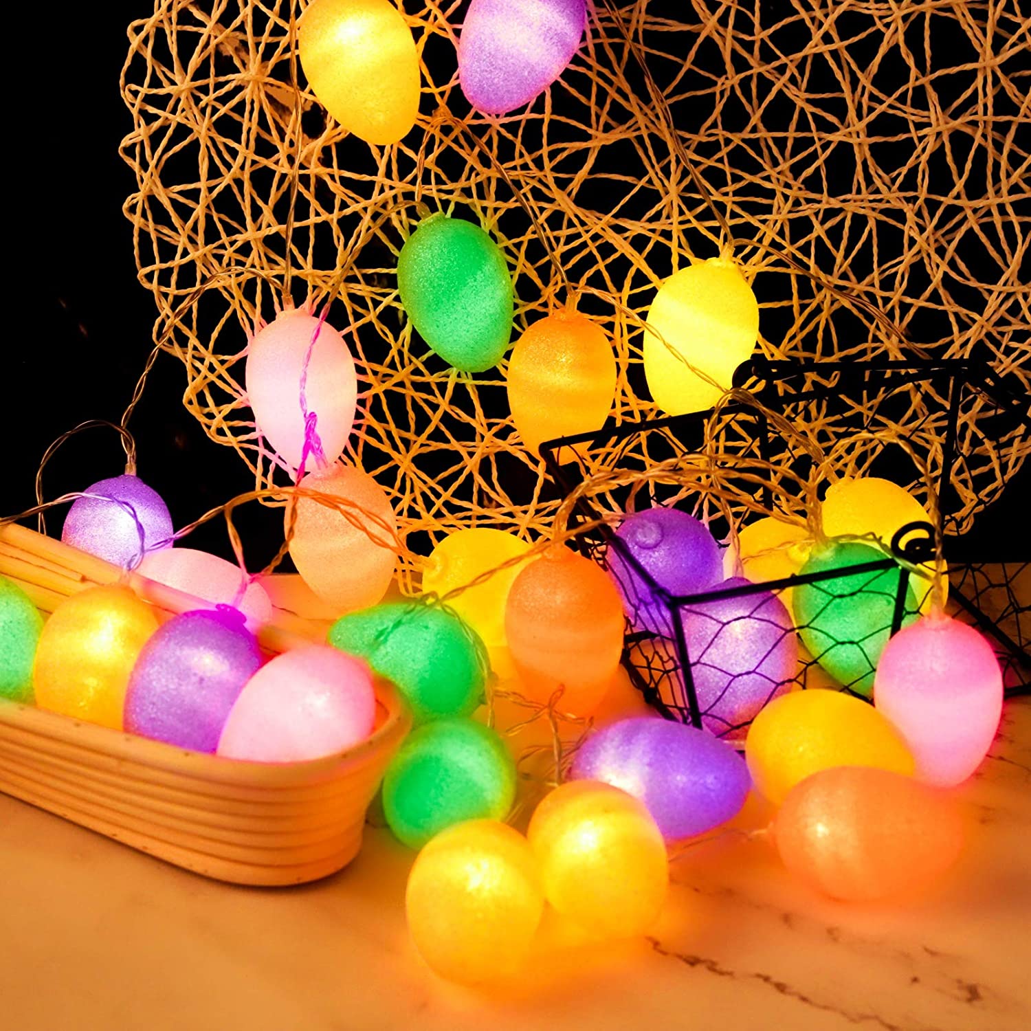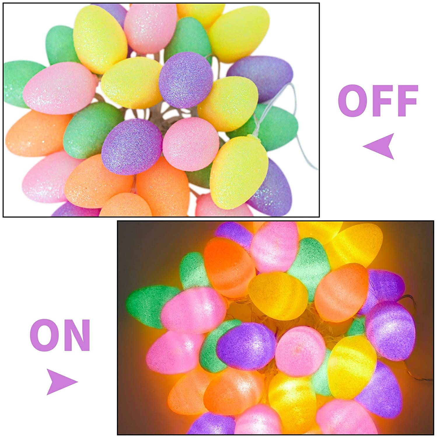 ELCOHO 13.2 Feet 30 Lights Easter Eggs LED String Lights Bright Color Glitter
