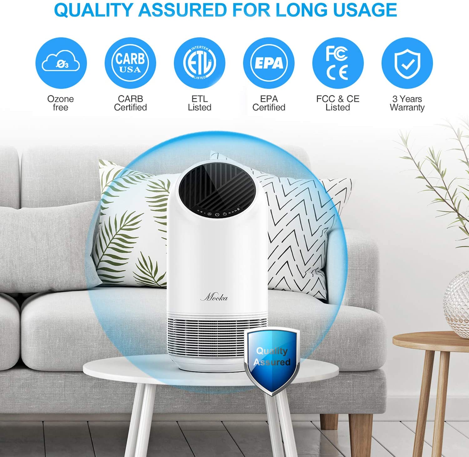 MOOKA Air Purifiers for Large Room. H13 HEPA Air Purifiers for Pets Allergies Smoke Mold. Air Cleaner for Bedroom Office Kitchen Living Room