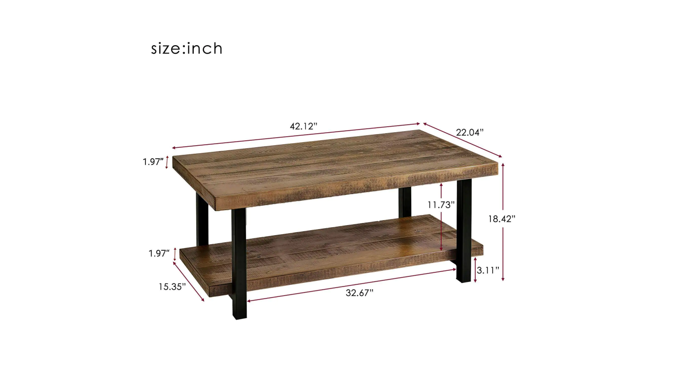 Harper & Bright Designs WF188187DAA 43 in. Brown Large Rectangle Wood Coffee Table with Shelf