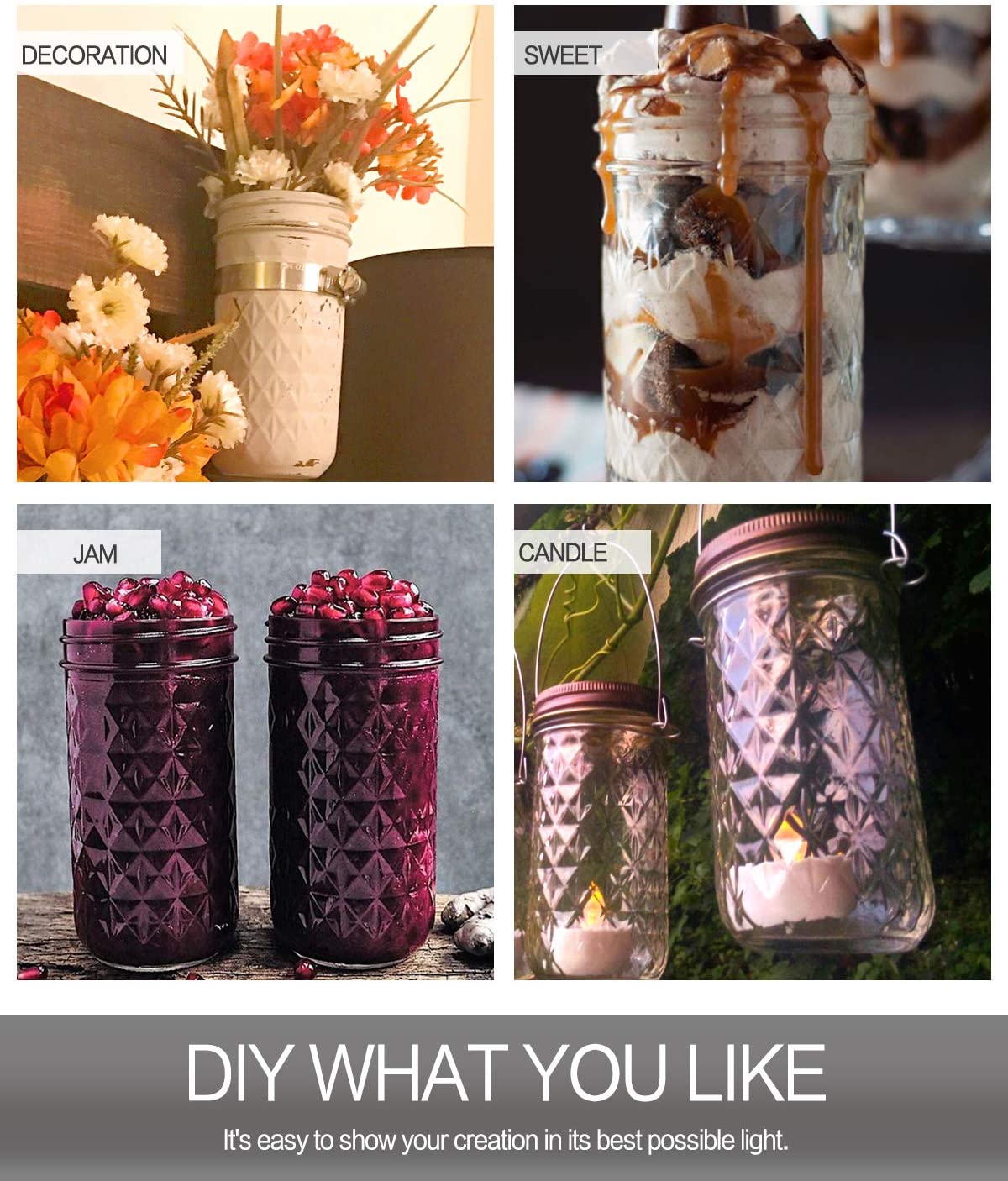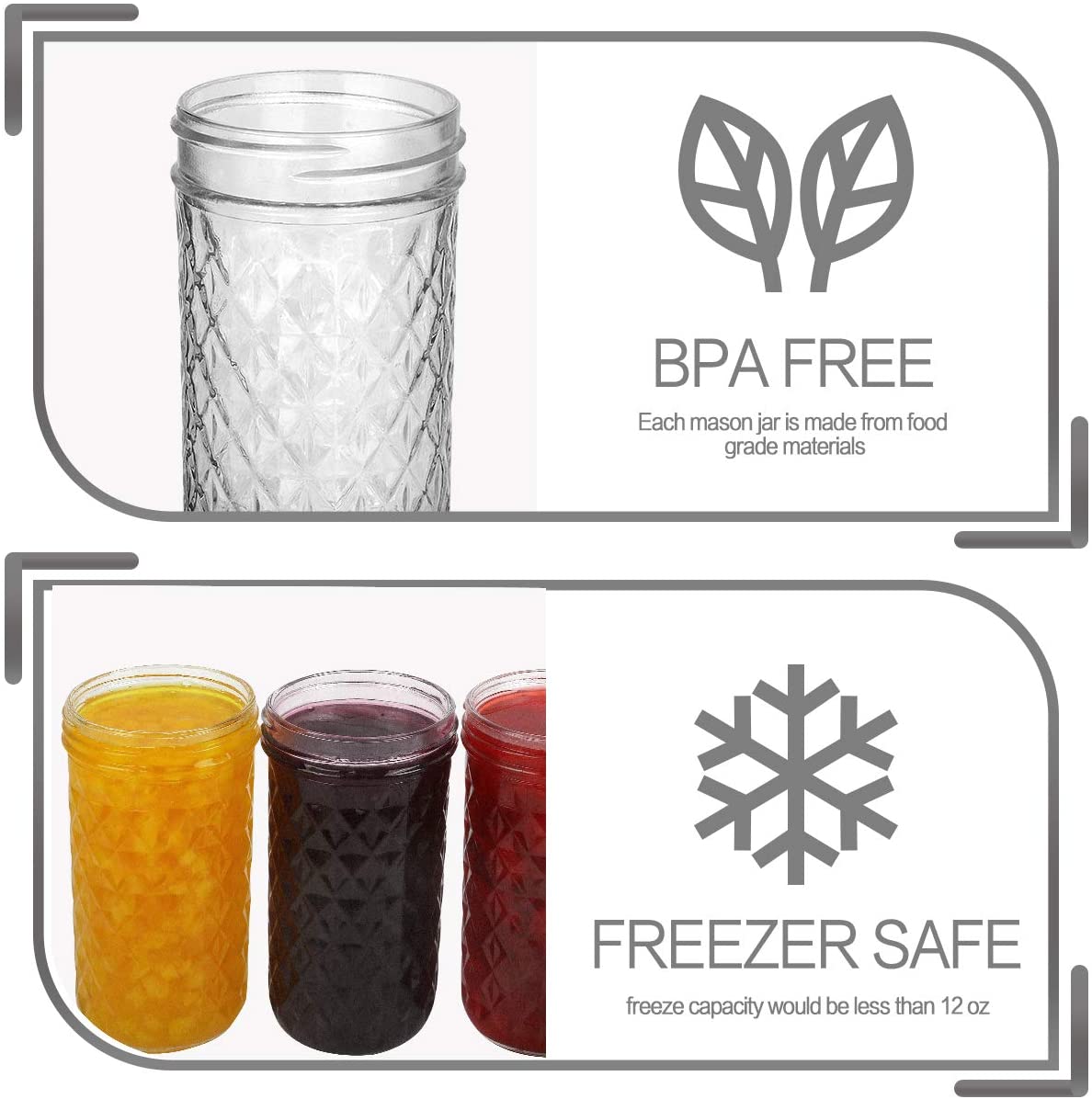 Mason Jars 12 OZ. VERONES Canning Jars Jelly Jars With Regular Lids.15 PACK