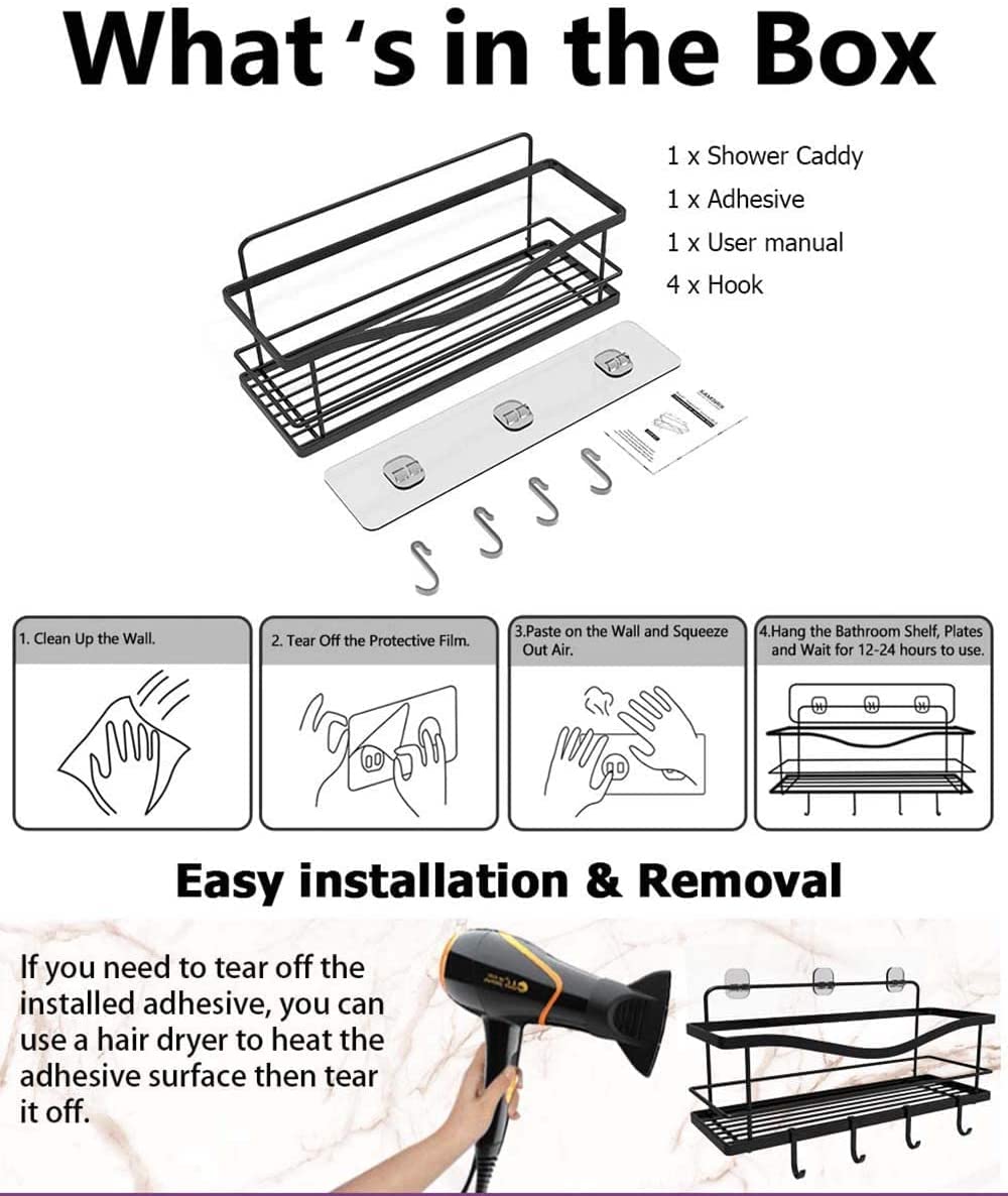 KINCMAX Shower Caddy Basket Shelf with Hooks. Caddy Organizer Basket Steel