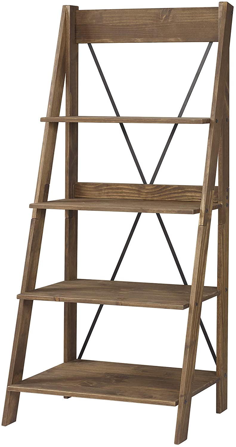 Solid Wood Ladder Bookshelf 68″ - Brown