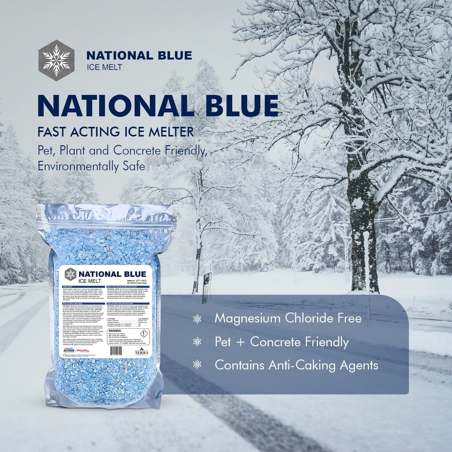 National Blue Ice Melt 8lb Bag – Fast Acting Ice Melter – Pet. Melts to -15°F