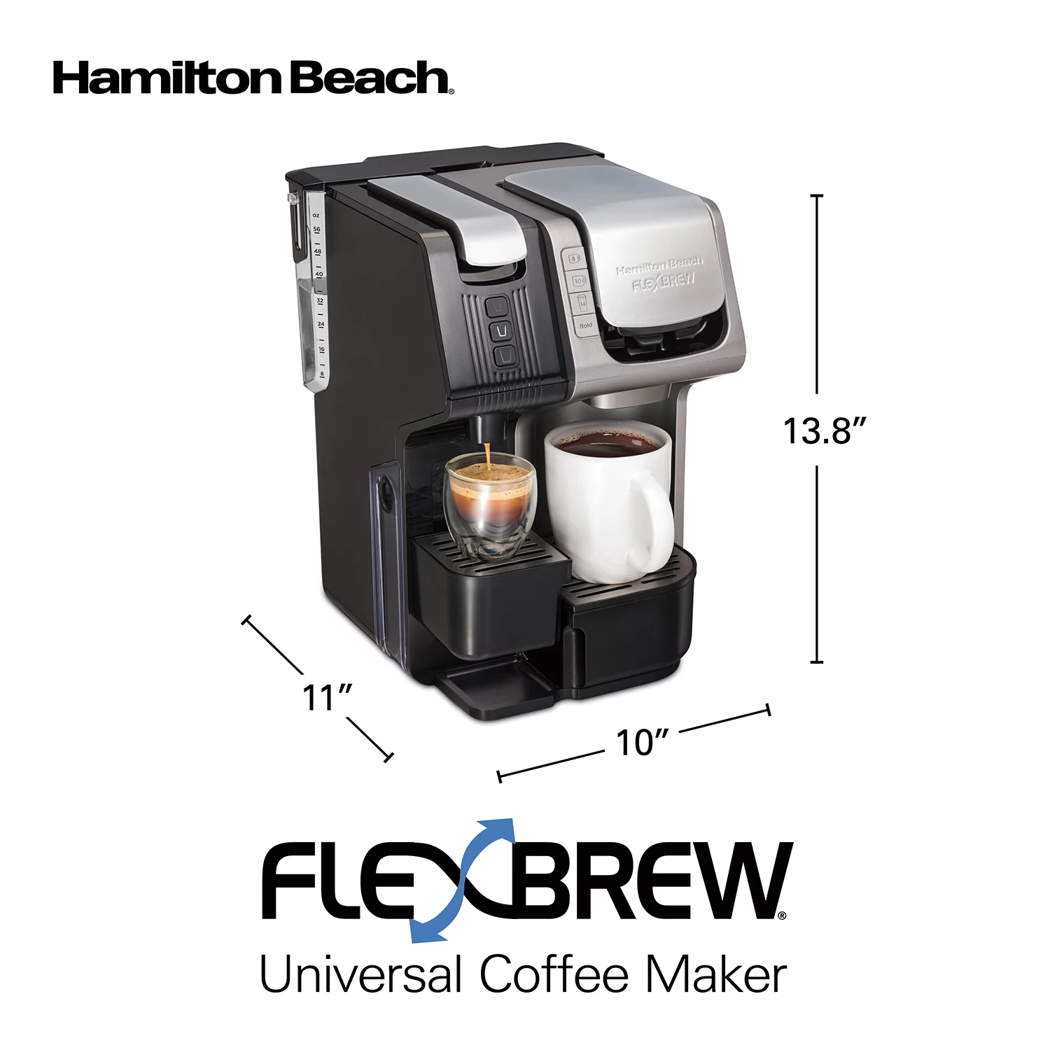 Hamilton Beach FlexBrew Trio 2-Way Coffee Maker. Compatible with K-Cup Pods or Grounds. Combo. Single Serve & Espresso Machine with 19 Bar Pump. 56 oz. Removable Reservoir. Black