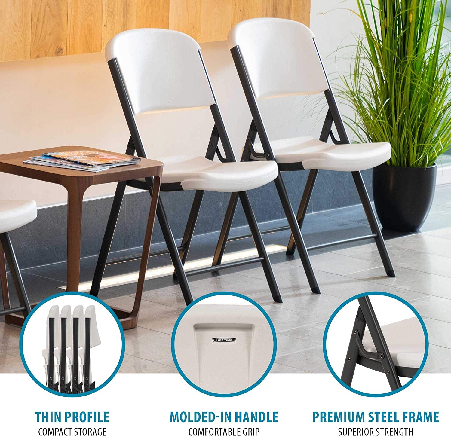 LIFETIME Commercial Grade Folding Chairs. 4 Pack. Almond on Grey (42803)