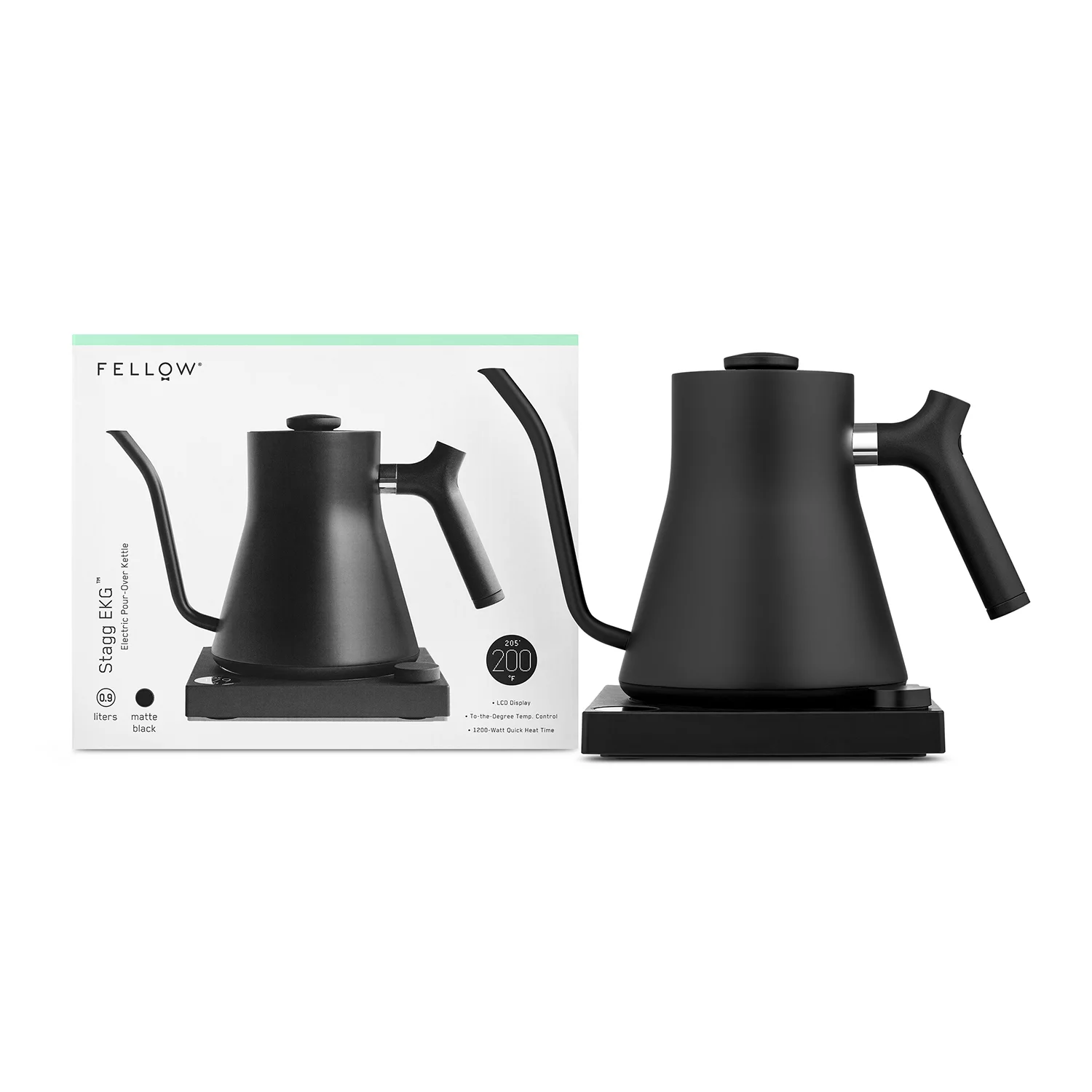 Fellow Stagg EKG Electric Gooseneck Kettle - Pour-Over Coffee and Tea Pot. Stainless Steel. Quick Heating. Matte Black. 0.9 Liter