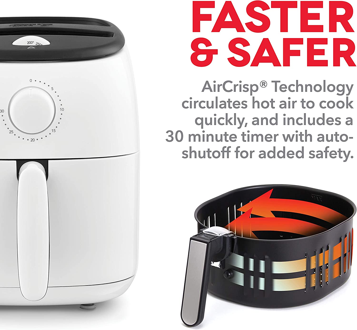 DASH Tasti-Crisp™ Electric Air Fryer Oven Cooker with Temperature Control. Non-Stick Fry Basket. Recipe Guide + Auto Shut Off Feature. 1000-Watt. 2.6Qt. White