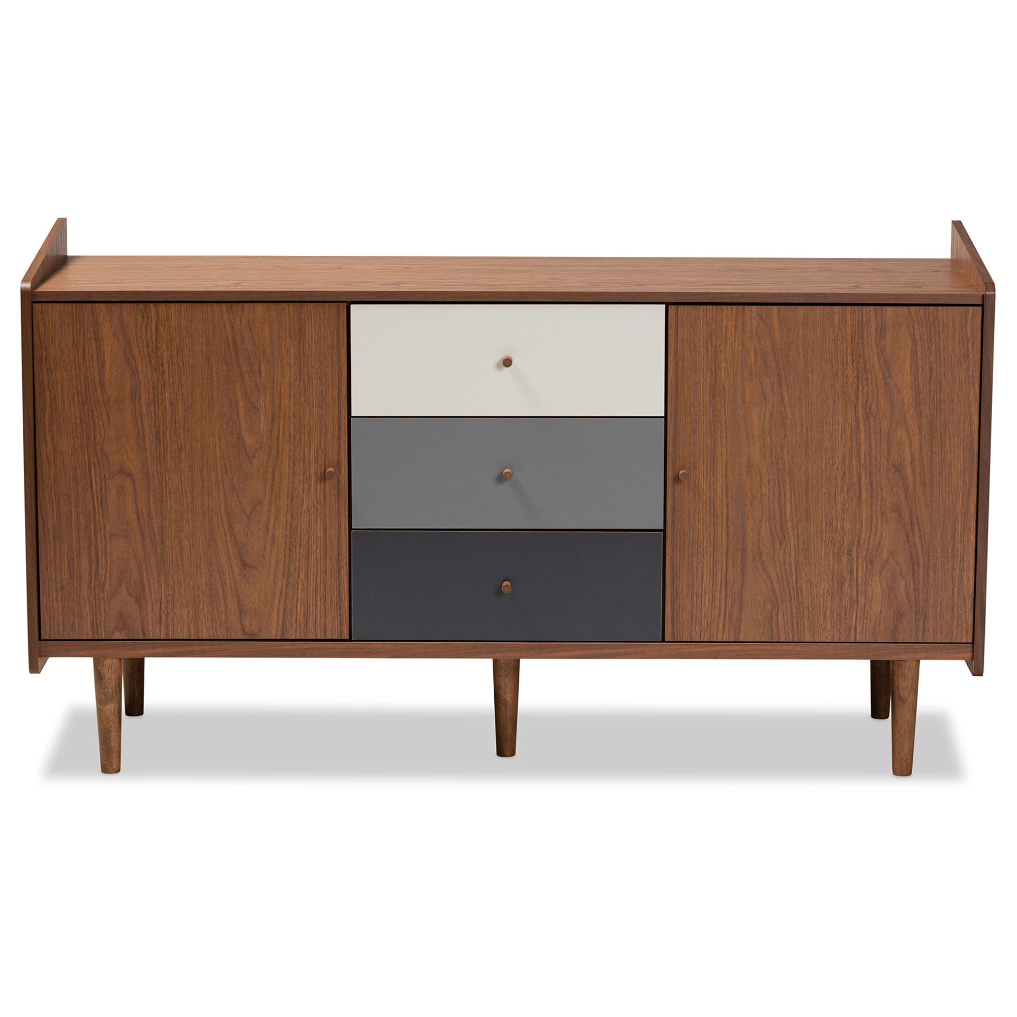 Baxton Studio Halden Mid-Century Modern Multicolor Walnut Brown and Grey Gradient Finished Wood 2-Door Dining Room Sideboard Buffet