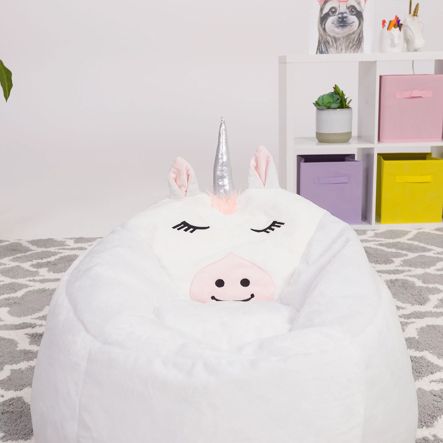 Posh Creations Unicorn Bean Bag Chair for Kids. Animal - White Unicorn